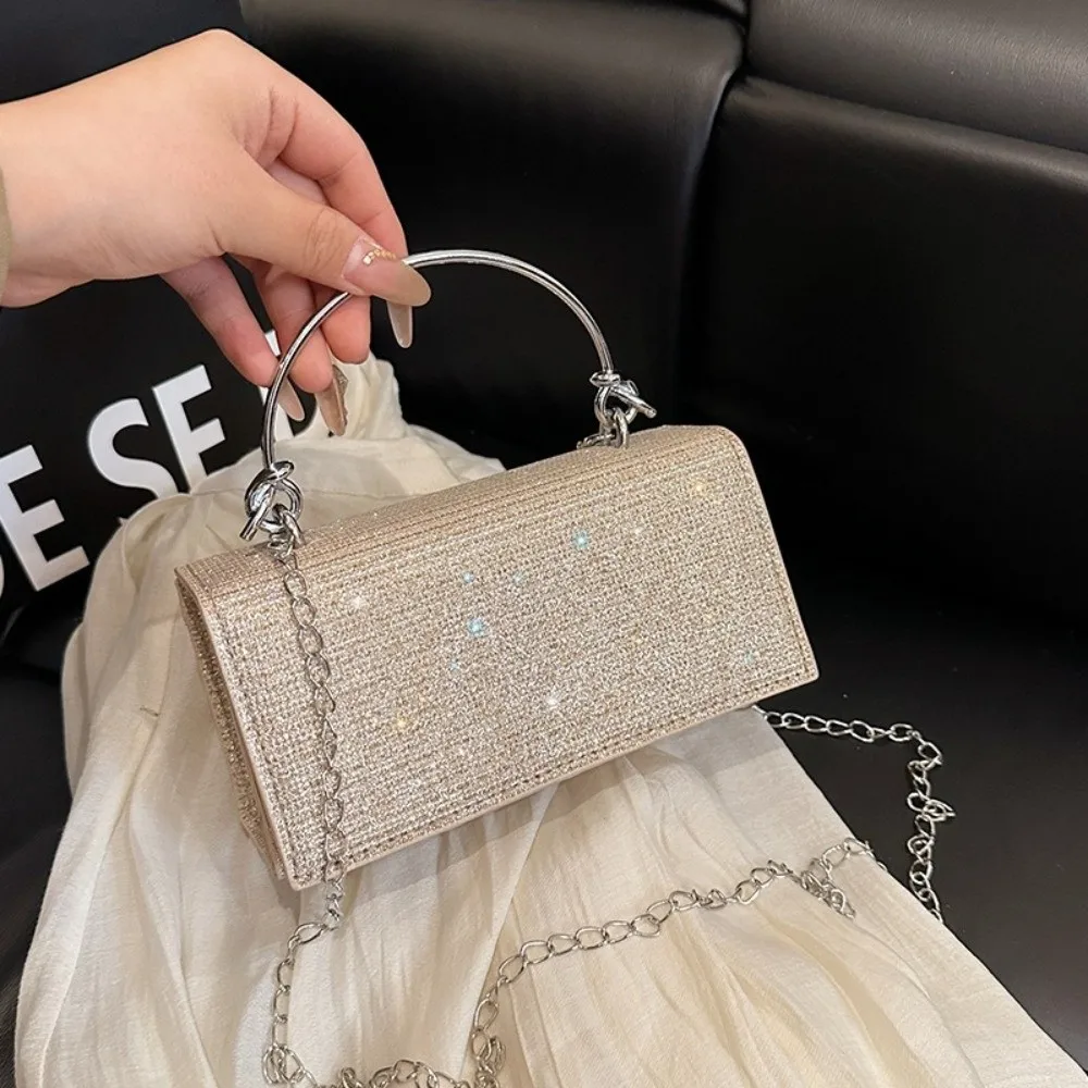 Pochette élégante pour femmes, tendance, poignée supérieure en métal, sac à bandoulière brillant, grande capacité, couleur unie, sac de Banquet de soirée, mariée