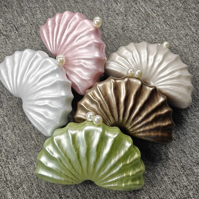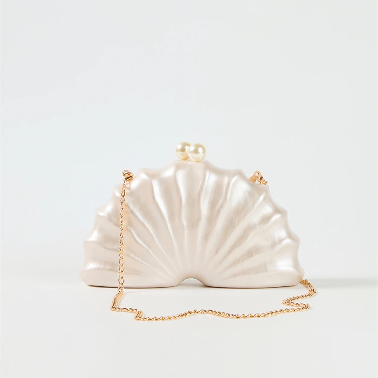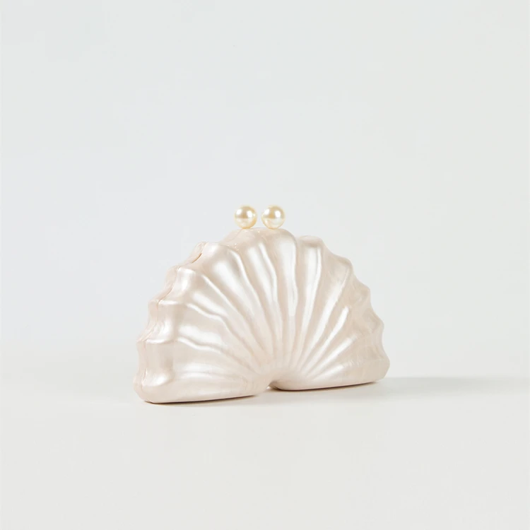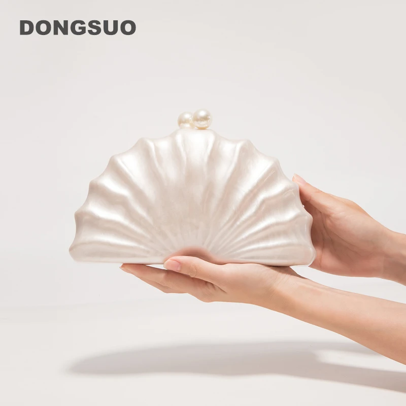 evening bag: Shell Clutch Bag Acrylic clutch bag women wedding evening party cute ivory pearl color purse handbag summer new 2024