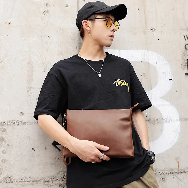 Pochette en cuir de cheval vintage pour hommes, pocommuniste d'affaires de luxe, sac à main, sac enveloppe pour IPAD, Elin, 2022 |