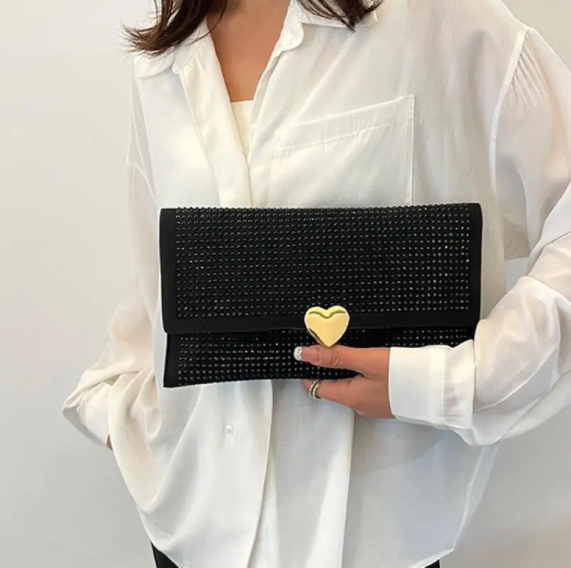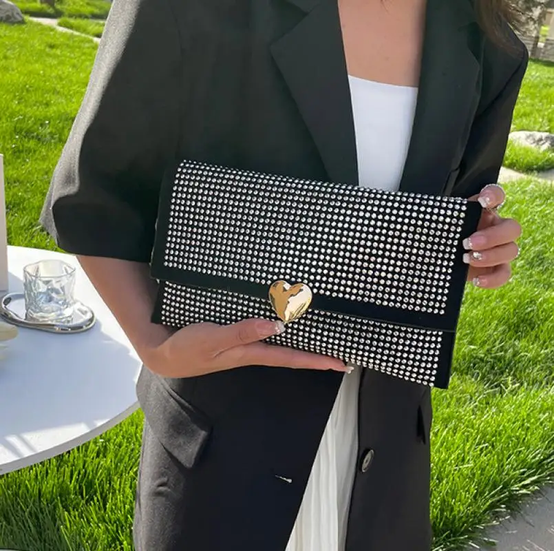 Pochette fine avec perles en diamant pour femme, sac à main de soirée, enveloppe d'amour de luxe, sac à main à rabat, porte-monnaie, sacs pour femme, mode |