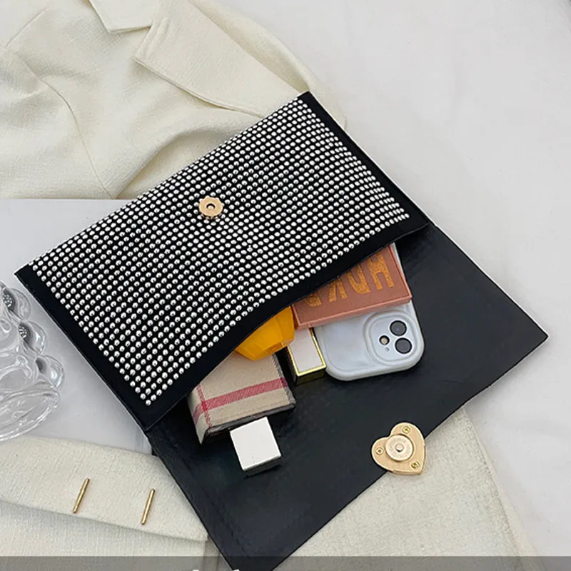 Pochette fine avec perles en diamant pour femme, sac à main de soirée, enveloppe d’amour de luxe, sac à main à rabat, porte-monnaie, sacs pour femme, mode