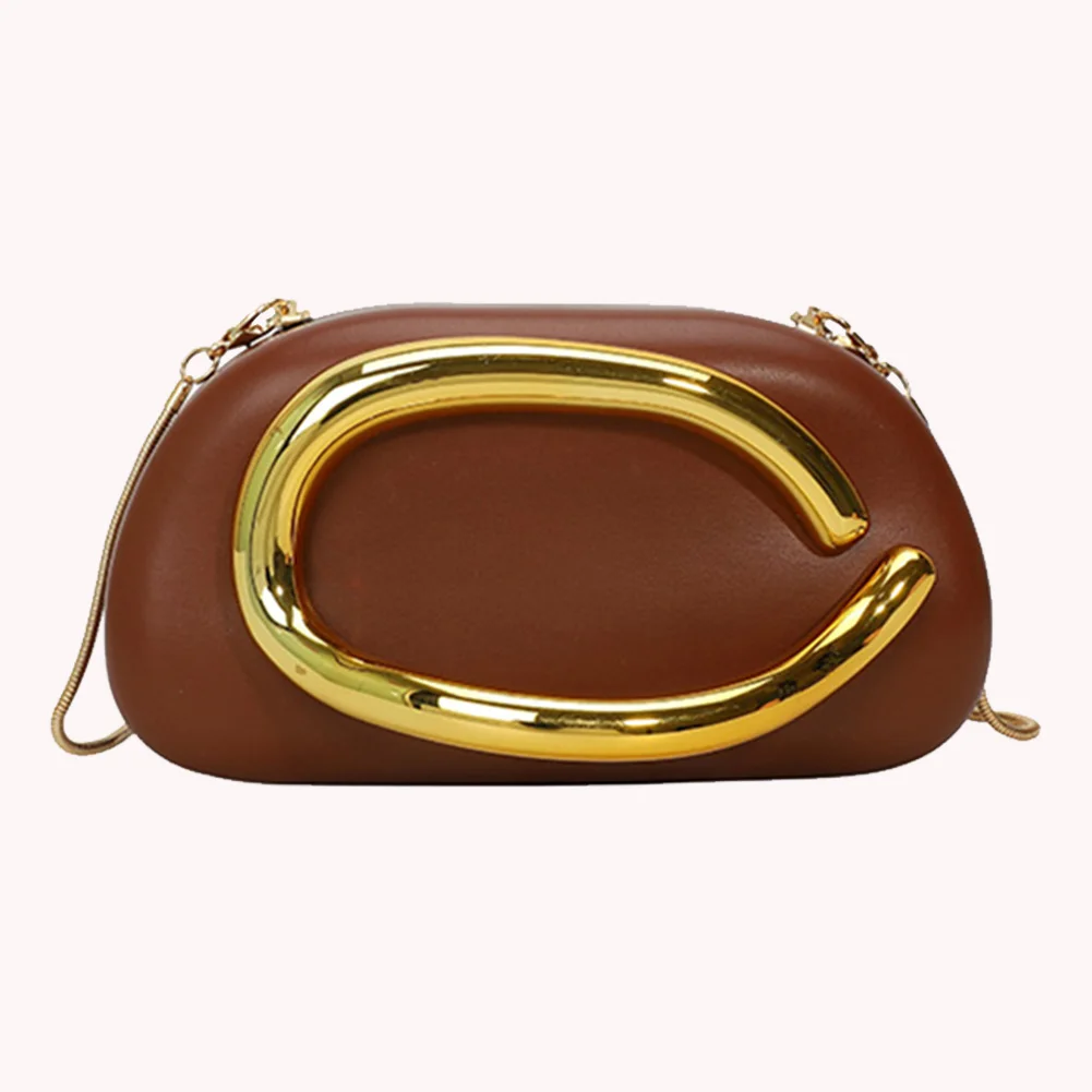 Pochette tendance en cuir PU pour femmes, avec chaîne, décoration en métal, sac de soirée, pochette à bandoulière pour dîner de soirée |