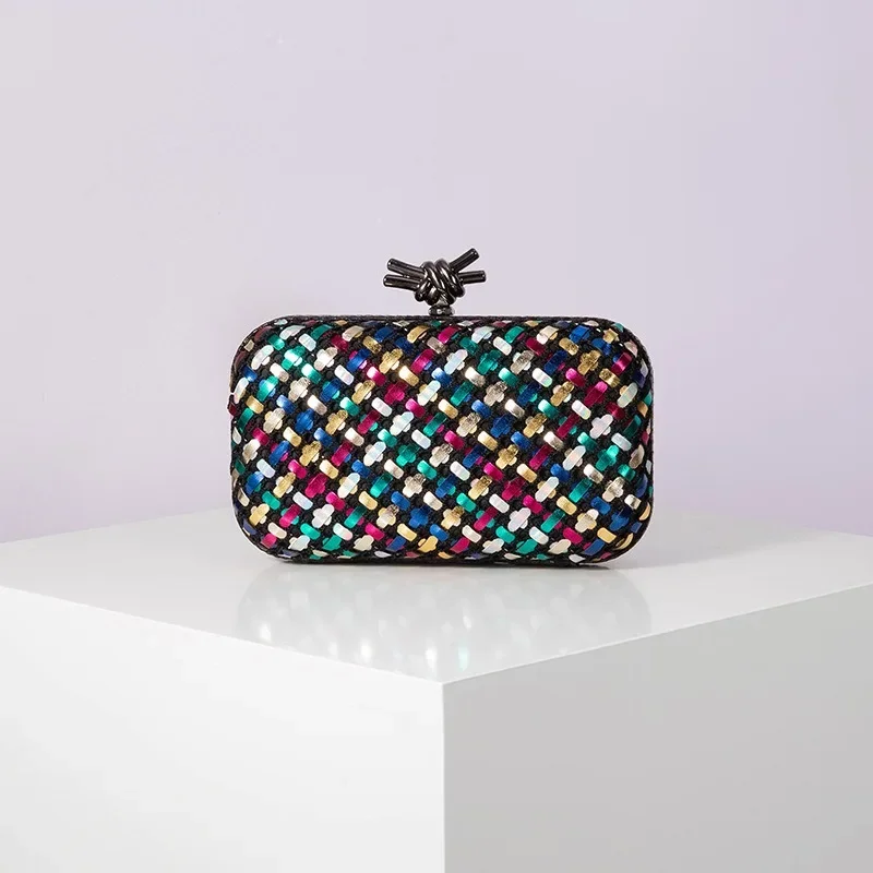 Pochette tissée pour femmes, sacs de soirée tressés en fil microcarence, petits sacs à main carrés classiques JOSmall, documents d’abonnés à la fête formelle