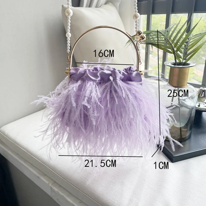 Pochettes de soirée de luxe en plumes d’autruche pour femmes, sac à bandoulière avec chaîne, pompon, sac à main de fête de mariage
