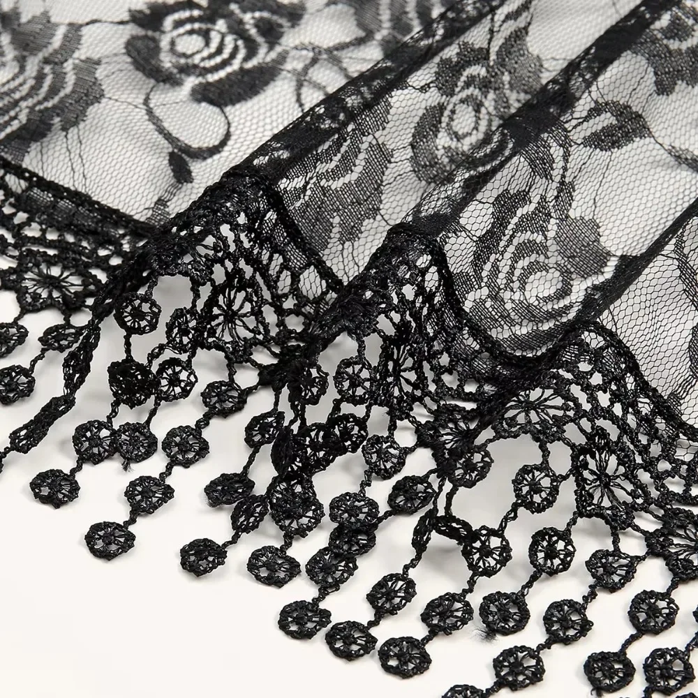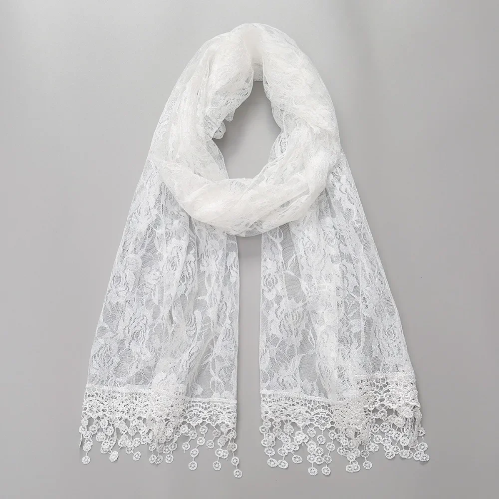 Polyvalent rétro dentelle glands écharpe longue Rose broderie femme Wrap châles couleur unie foulard voiles pour les femmes |