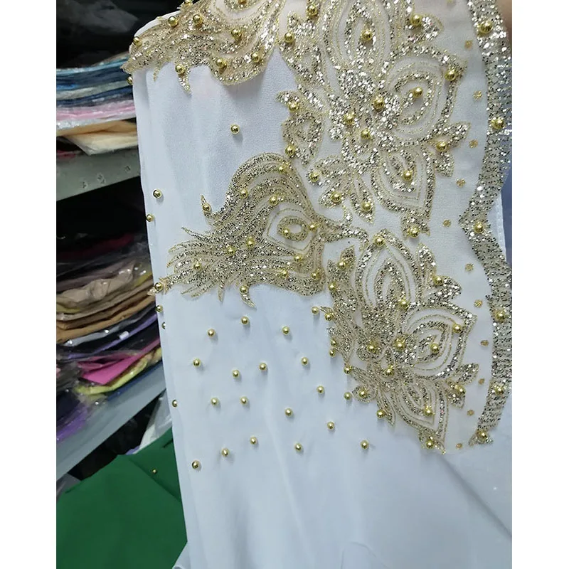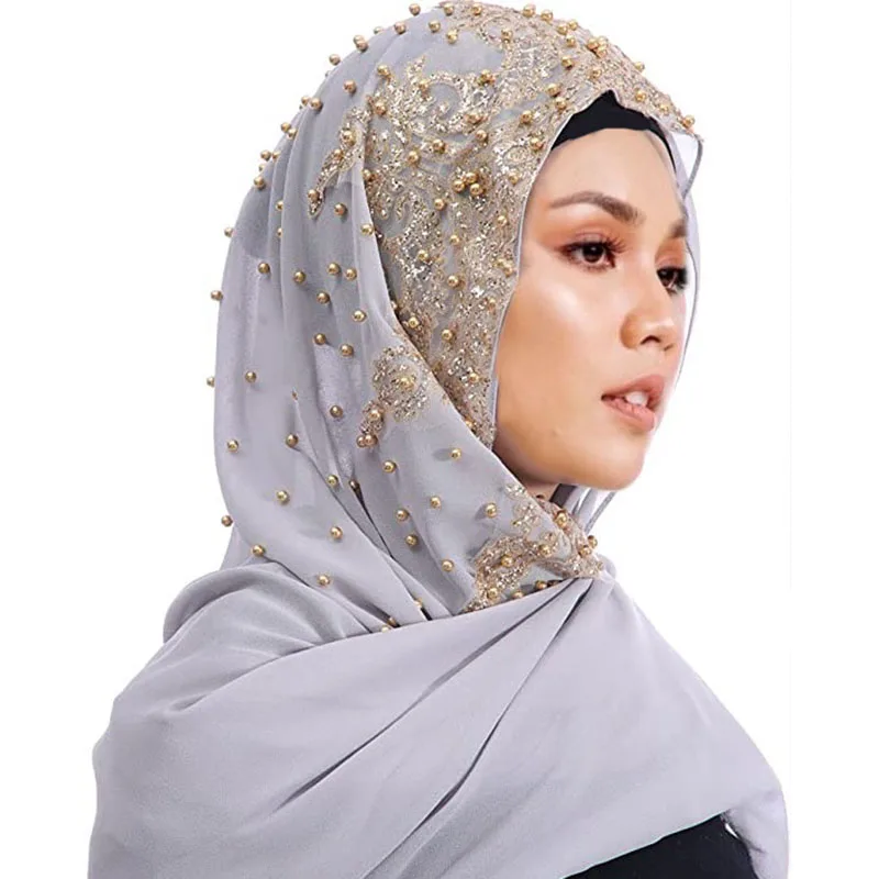 Premium mousseline de soie Hijabs écharpe miroitant or paillettes perles Hijab pour femme musulmane foulard châle enveloppement léger |