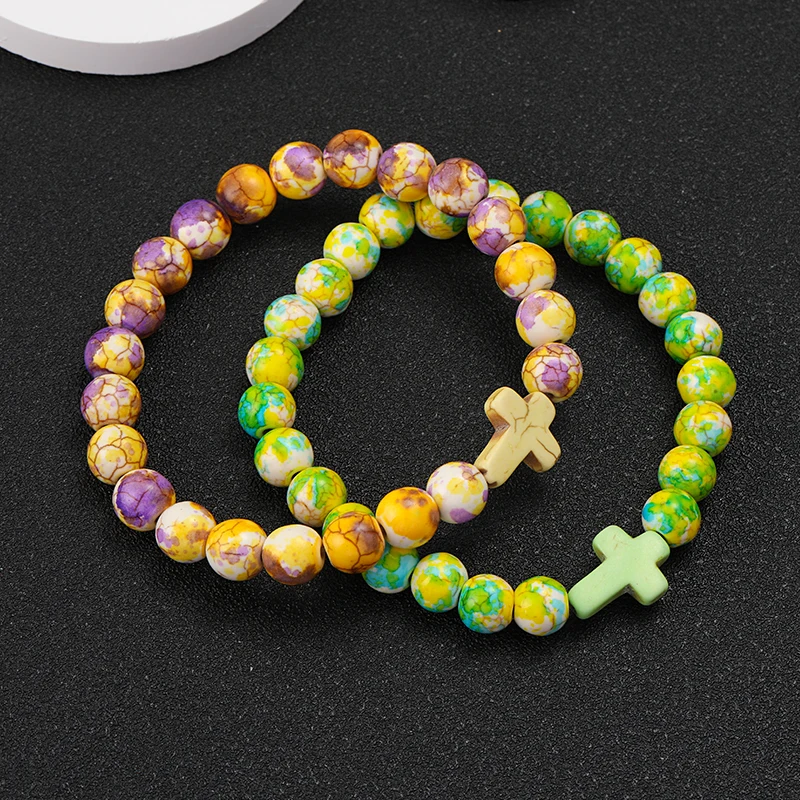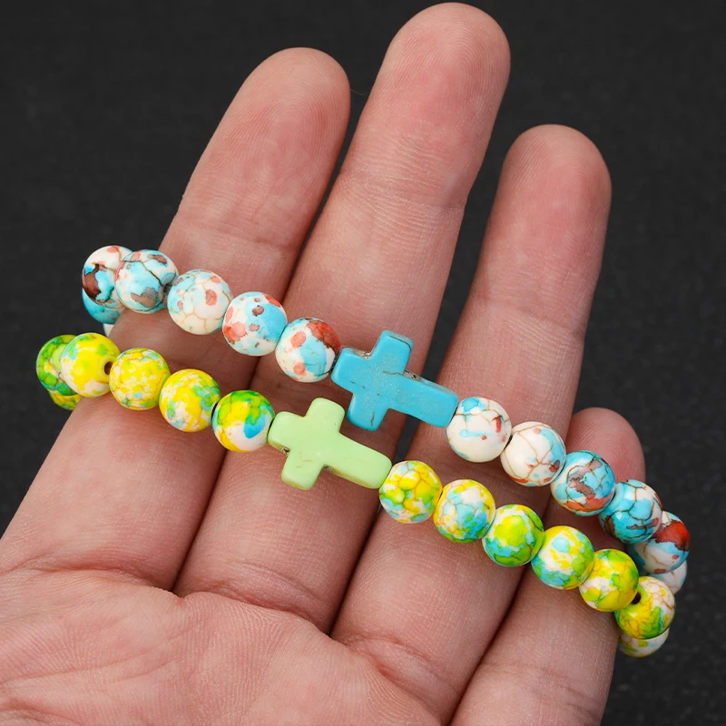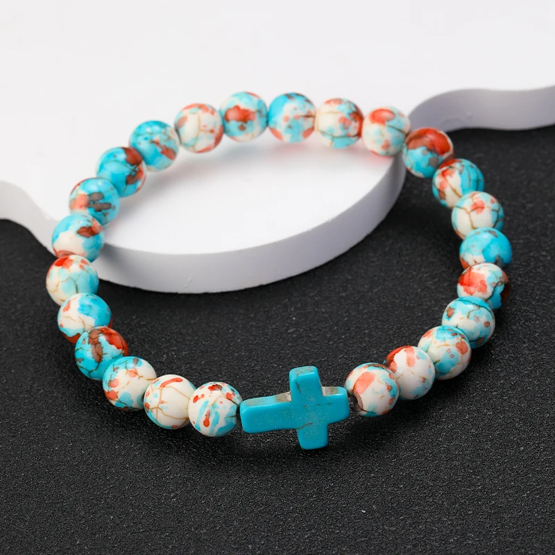 Prière hommes pierre naturelle bois perles chapelet croix Bracelets Onyx méditation Bracelet femmes Yoga bijoux Homme Pulsera |