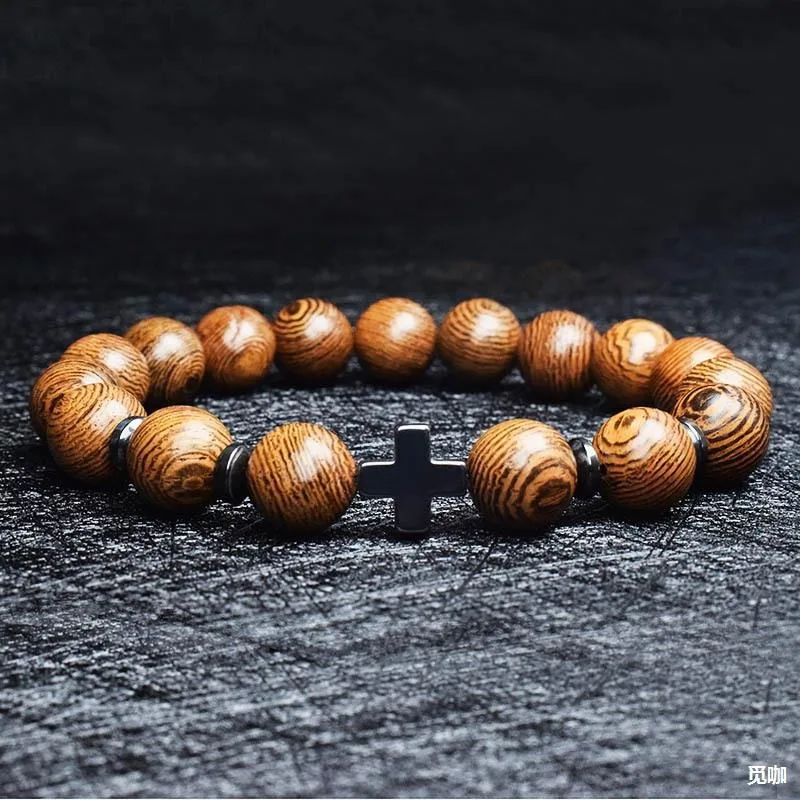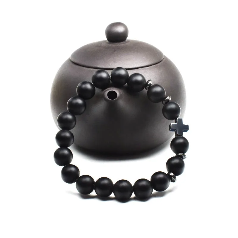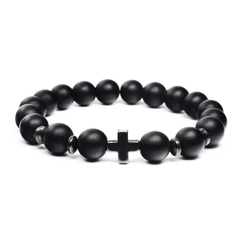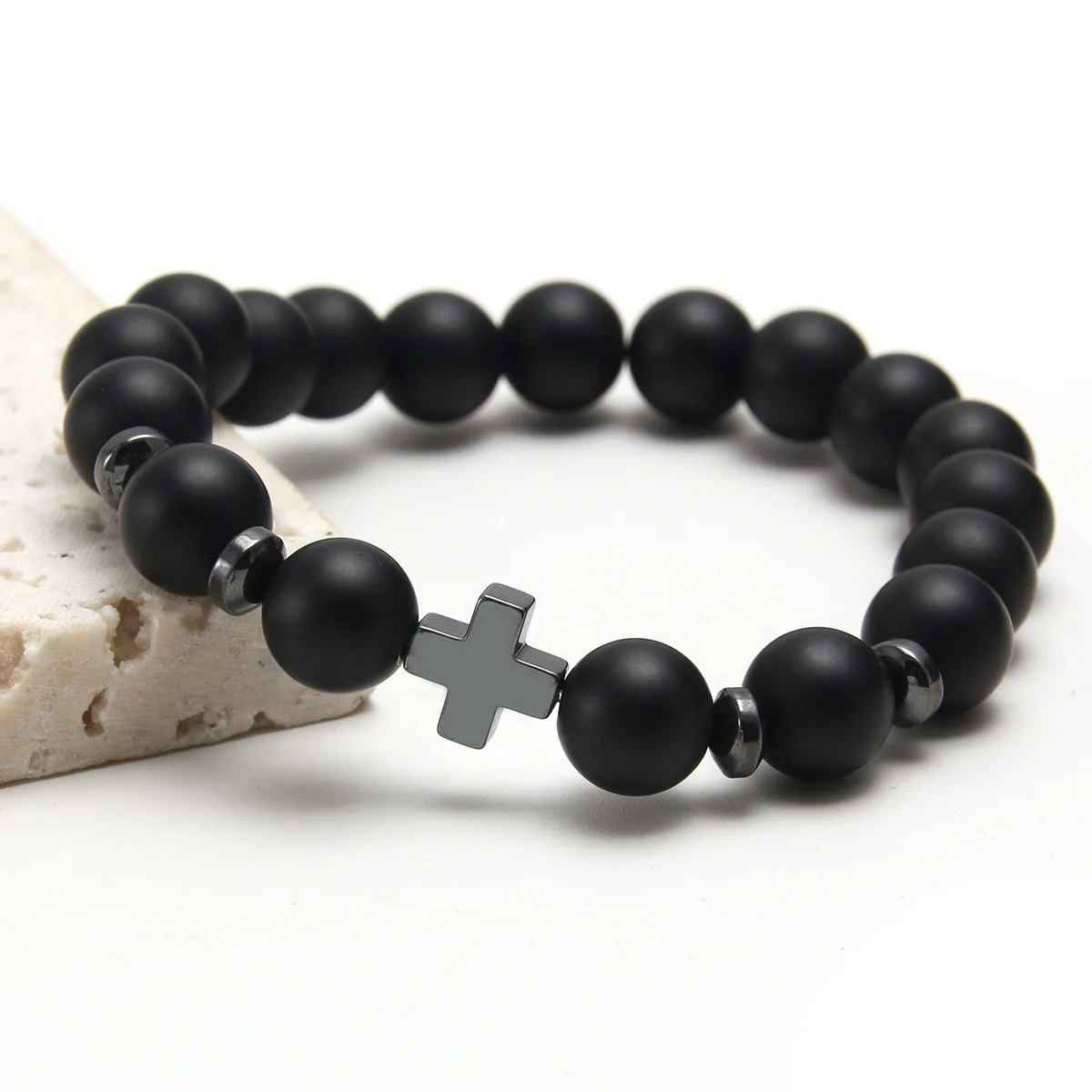 Prière hommes pierre naturelle bois perles chapelet hématite croix Bracelets Onyx méditation Bracelet femmes Yoga bijoux Homme Pulsera |