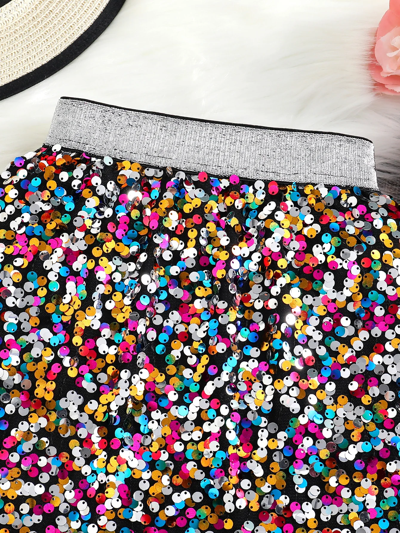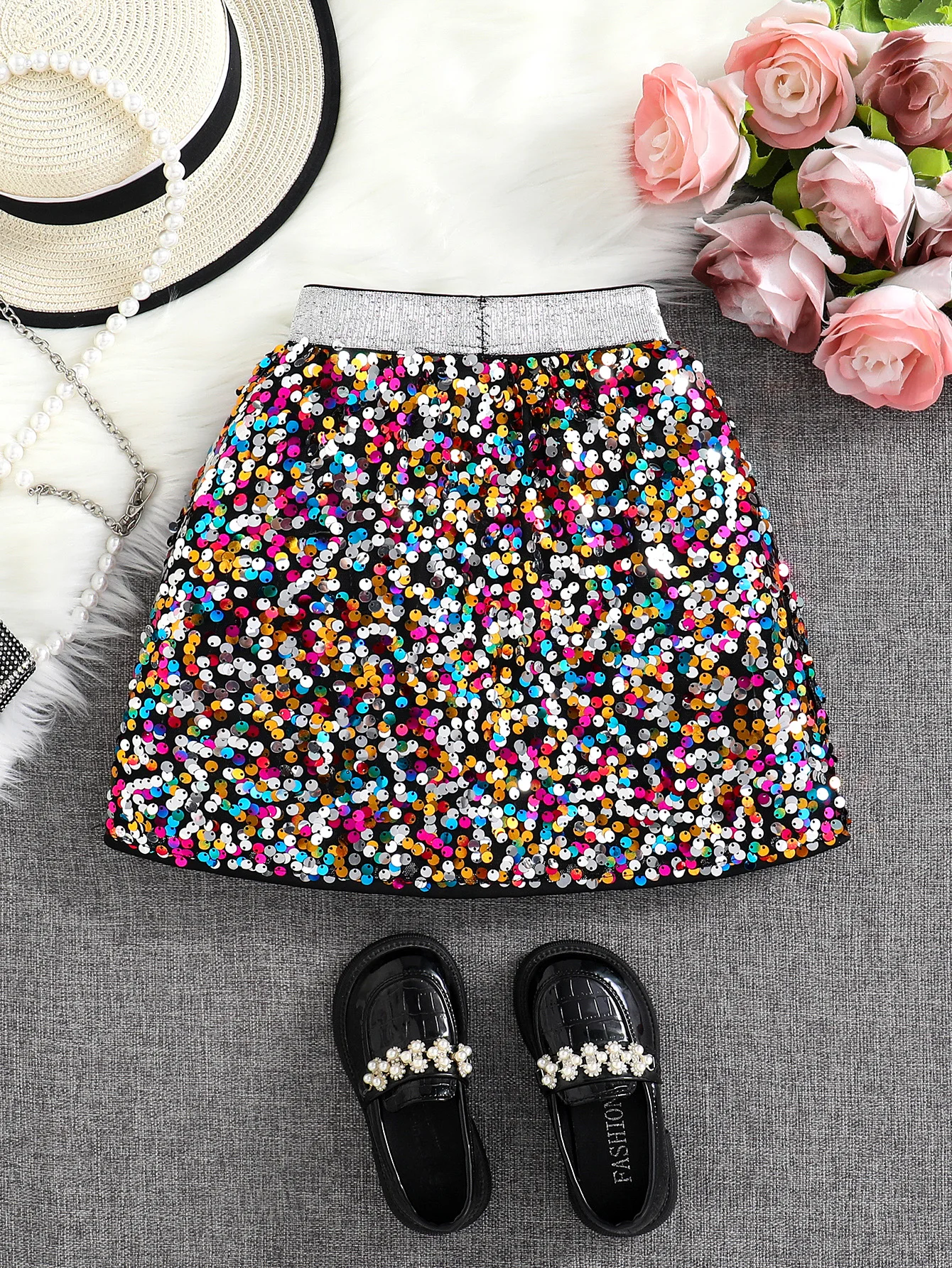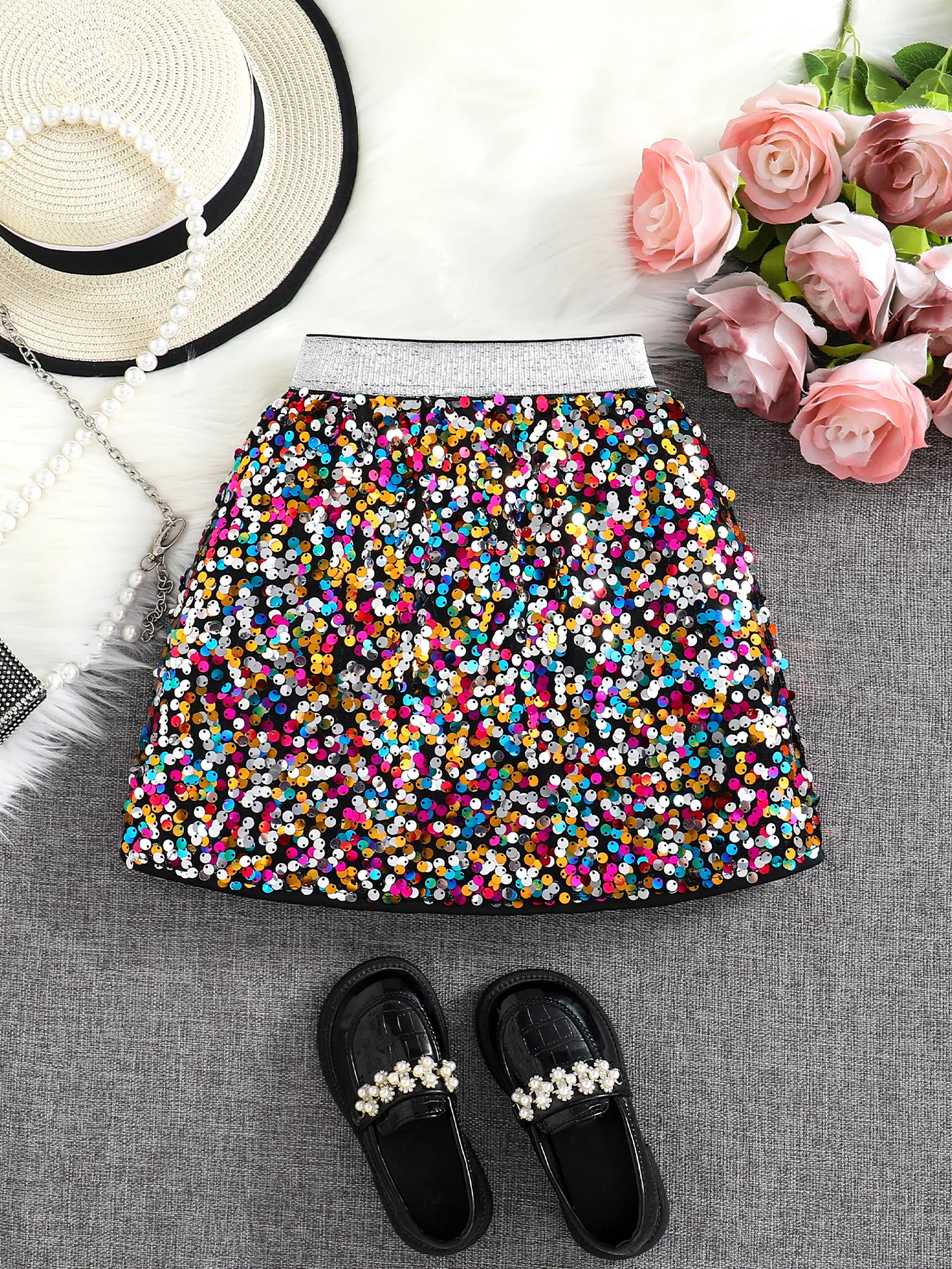 Printemps et automne nouvelle jupe trapèze taille haute à paillettes brillantes pour filles; Une seule pièce