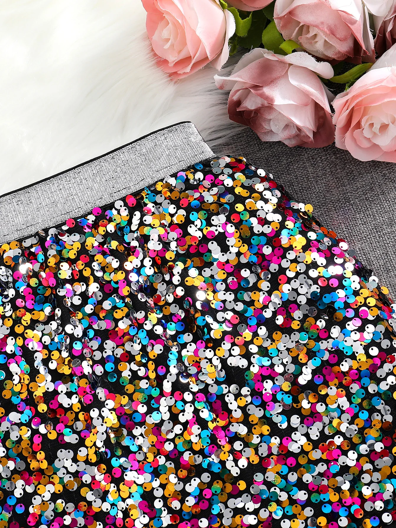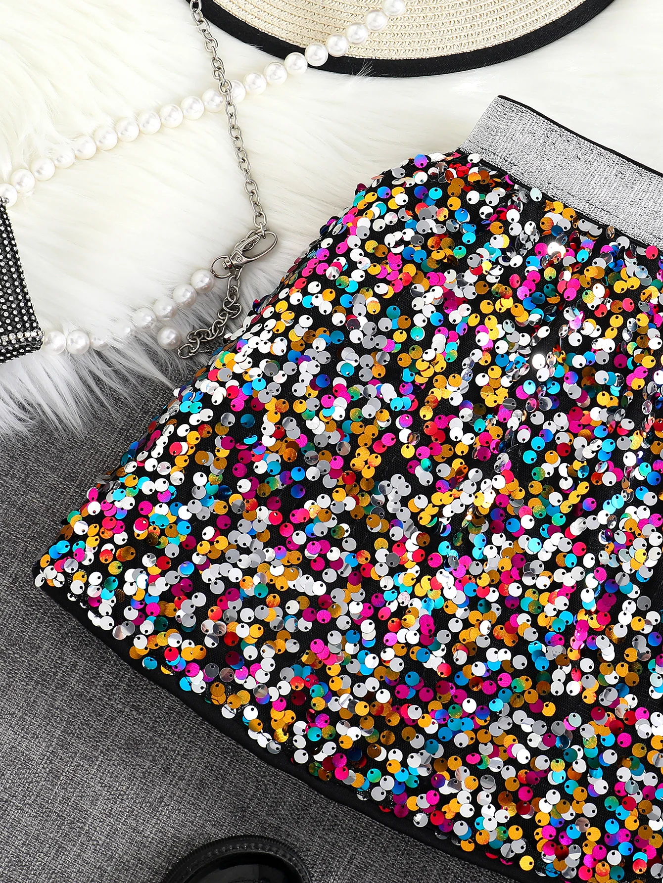 Printemps et automne nouvelle jupe trapèze taille haute à paillettes brillantes pour filles; Une seule pièce |
