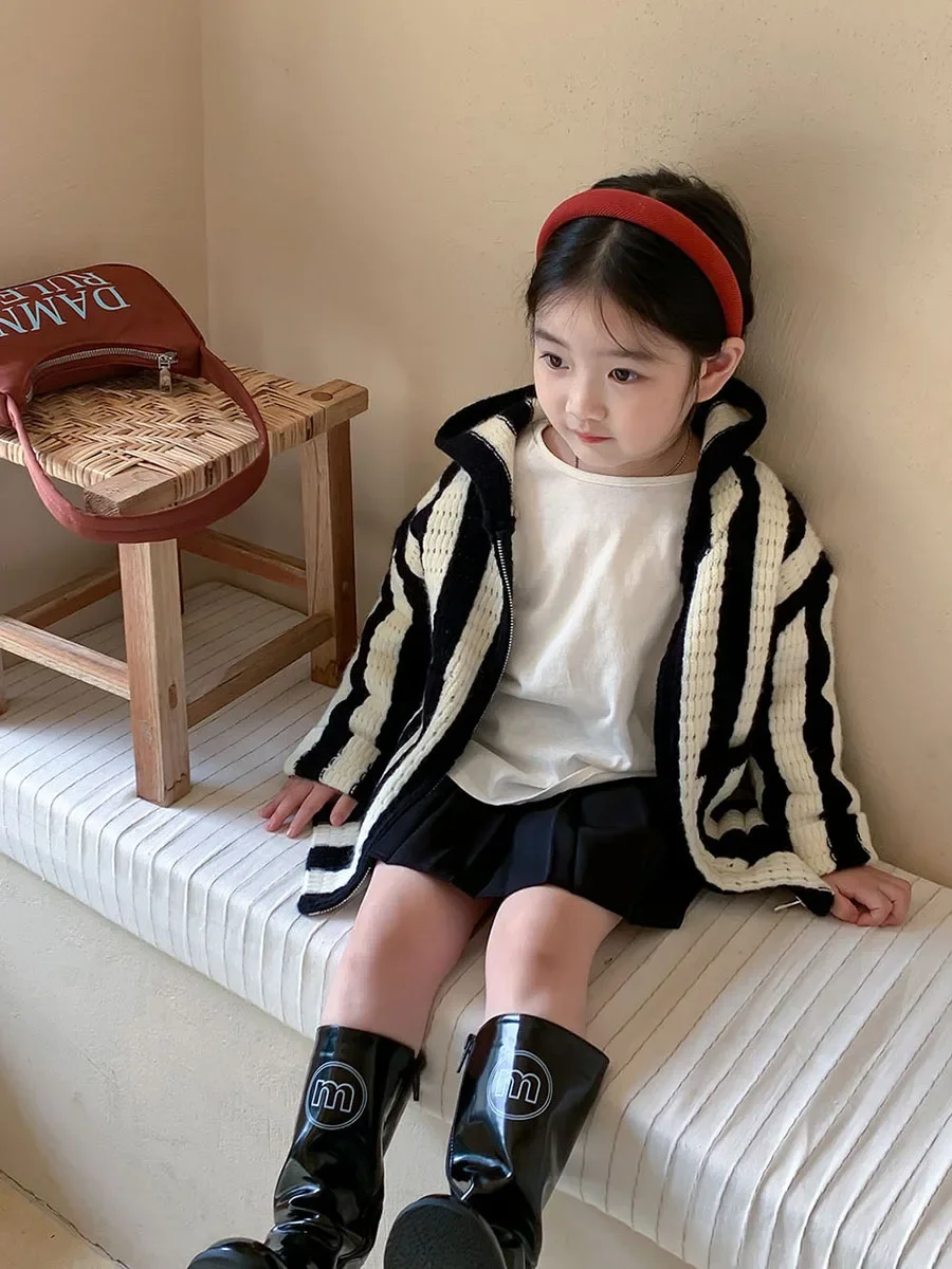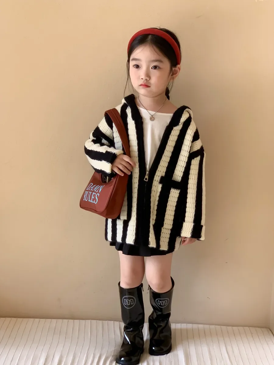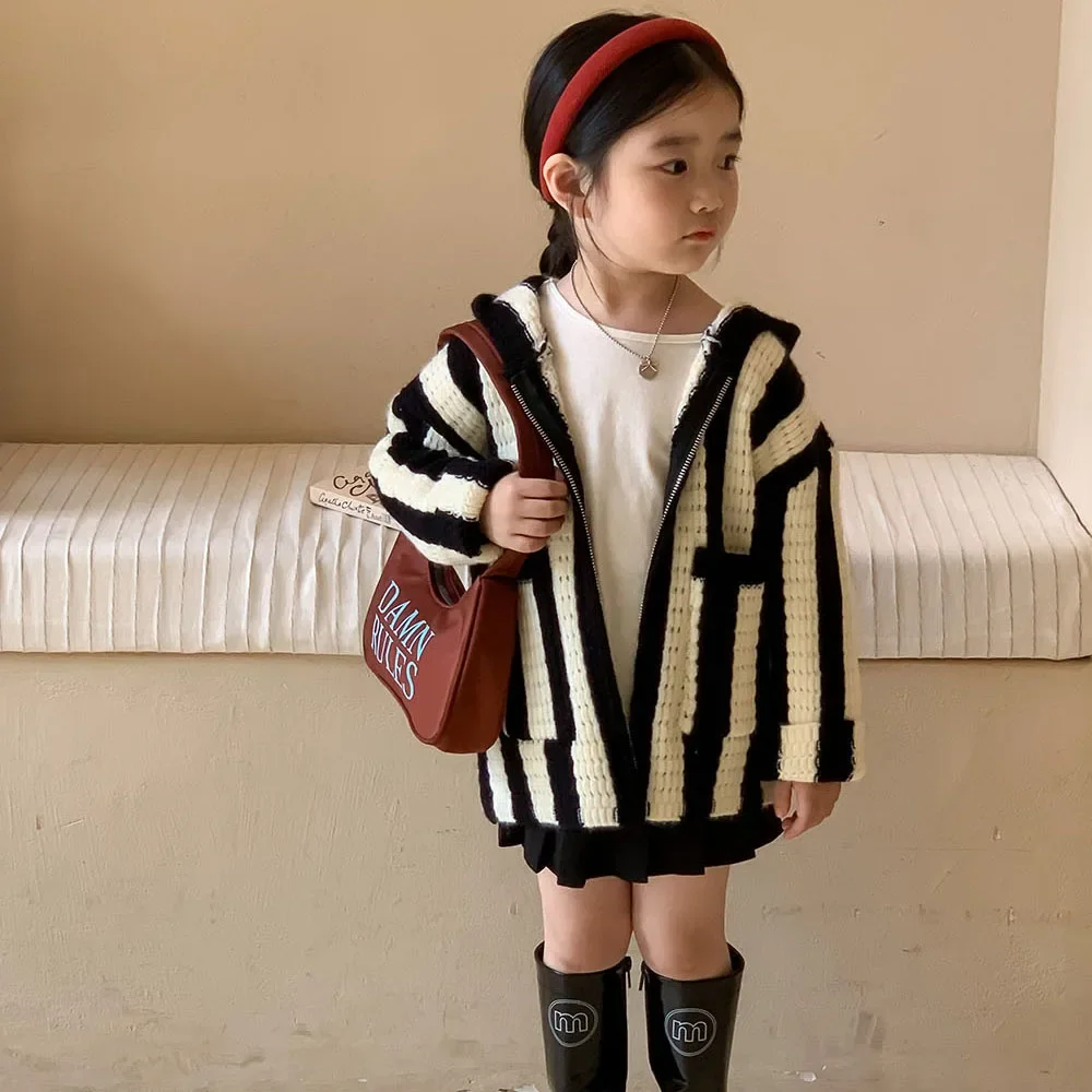 Pull à capuche rayé décontracté pour filles, manteau tout match pour enfants, belle version coréenne, printemps, automne, nouveau, 2023 |