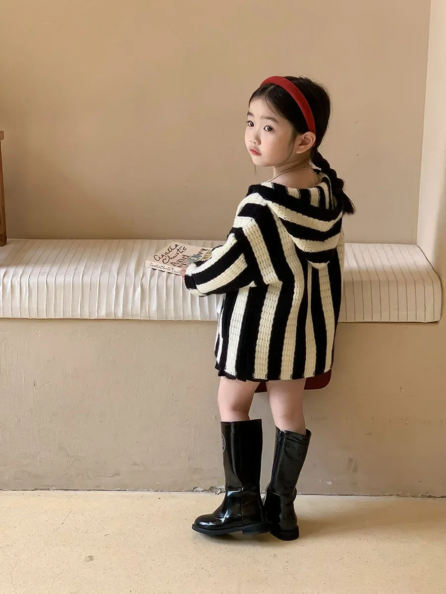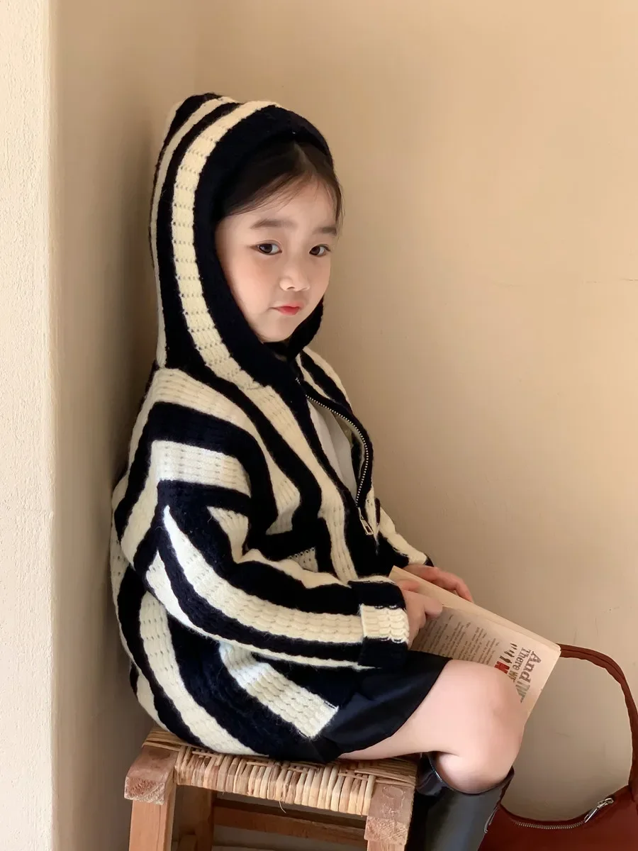 Pull à capuche rayé décontracté pour filles, manteau tout match pour enfants, belle version coréenne, printemps, automne, nouveau, 2023