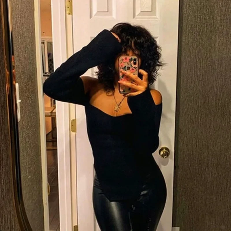 Pull tricoté à manches longues pour femmes, couleur unie, Sexy, noir africain, épaules dénudées, couche de Base, haut de couleur Pure, vêtements supérieurs féminins |