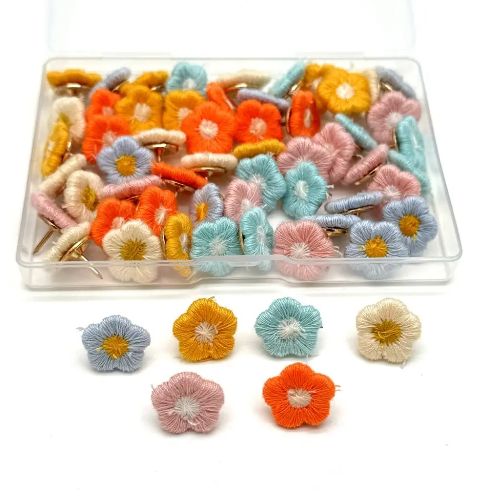 Punaises à fleurs brodées créatives, 20/30/50 pièces, planche de bricolage 3D avec boîte, goujons décoratifs mignons, fournitures scolaires et de bureau
