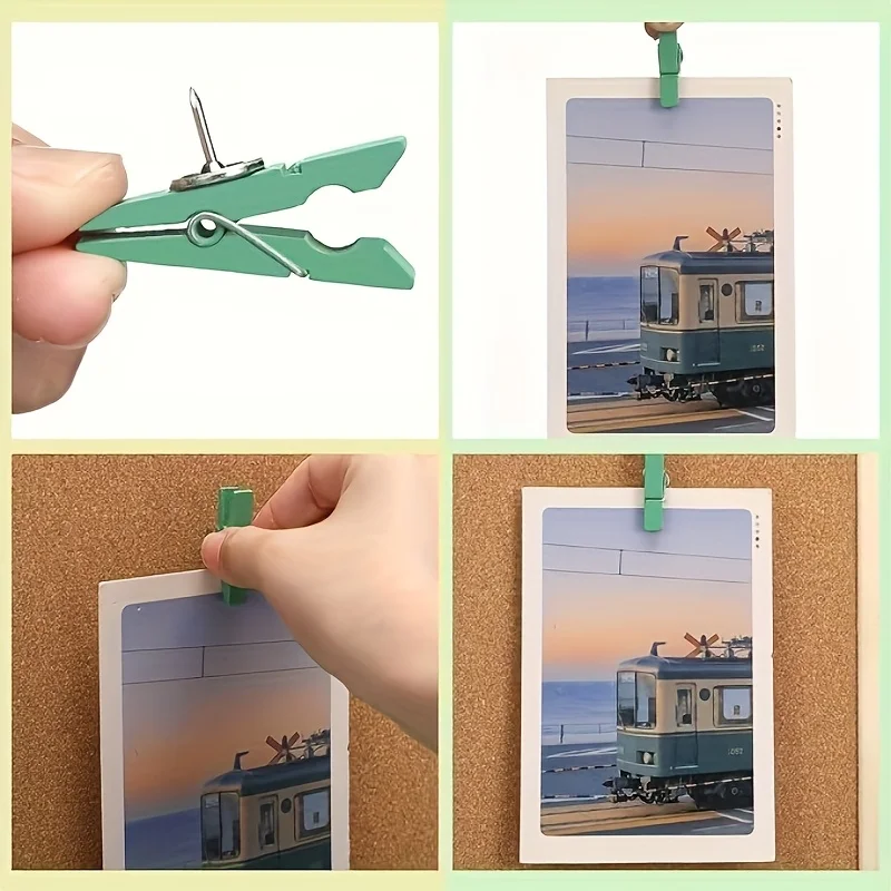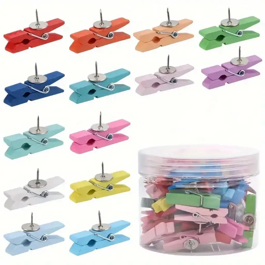 Punaises Pastel avec Clips en bois, 50 pièces, punaises colorées pour salle de classe, bureau, tableaux d'affichage à domicile | Punaises vibrantes |