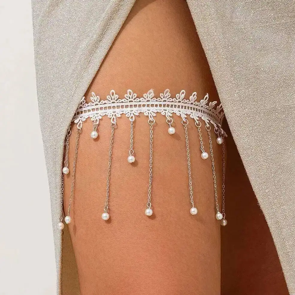 PuRui élégant Imitation perle gland jambe cuisse chaîne pour les femmes Simple Sexy élastique pansement jarretière corps bijoux accessoires |
