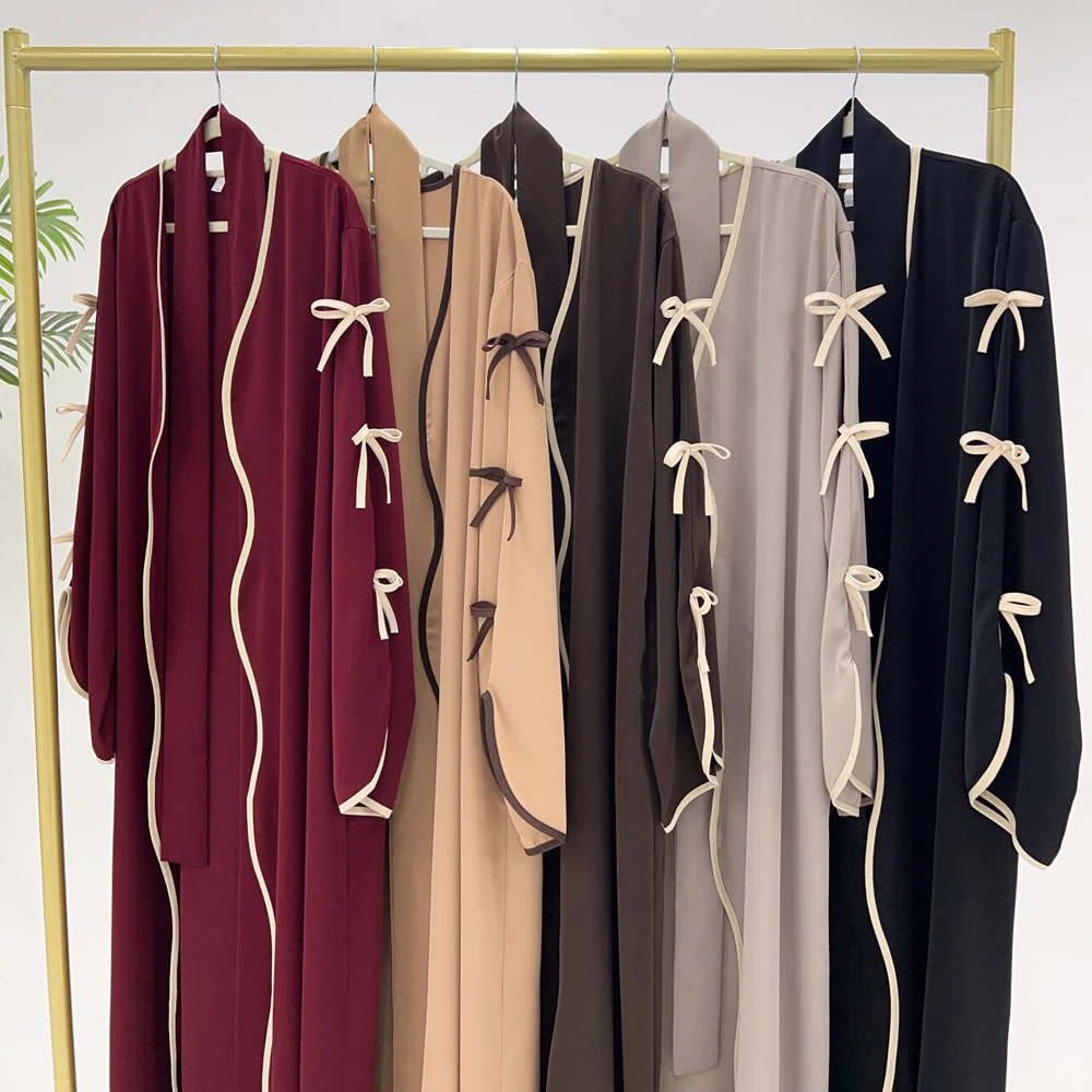 Ramadan Eid ouvert papillon noeud Kimono Abaya Damen dubaï luxe Islam musulman Robe modeste femmes Kebaya caftan Robe Femme Musulman
