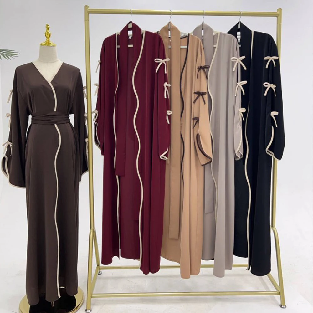 Ramadan Eid ouvert papillon noeud Kimono Abaya Damen dubaï luxe Islam musulman Robe modeste femmes Kebaya caftan Robe Femme Musulman |