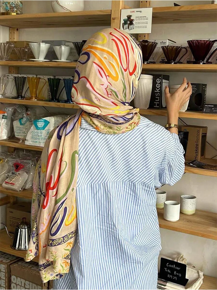 "Ce hijab est une vraie découverte ! La qualité du tissu est exceptionnelle, il est doux, léger et très agréable à porter. Les motifs aquarelle sont magnifiques et donnent un côté bohème très tendance. J'ai également apprécié la facilité d'enveloppement du foulard. Le seul bémol est que la couleur est un peu plus pâle que sur la photo, mais cela ne gâche en rien mon plaisir de le porter. Dans l'ensemble, c'est un très beau produit que je recommande sans hésiter."