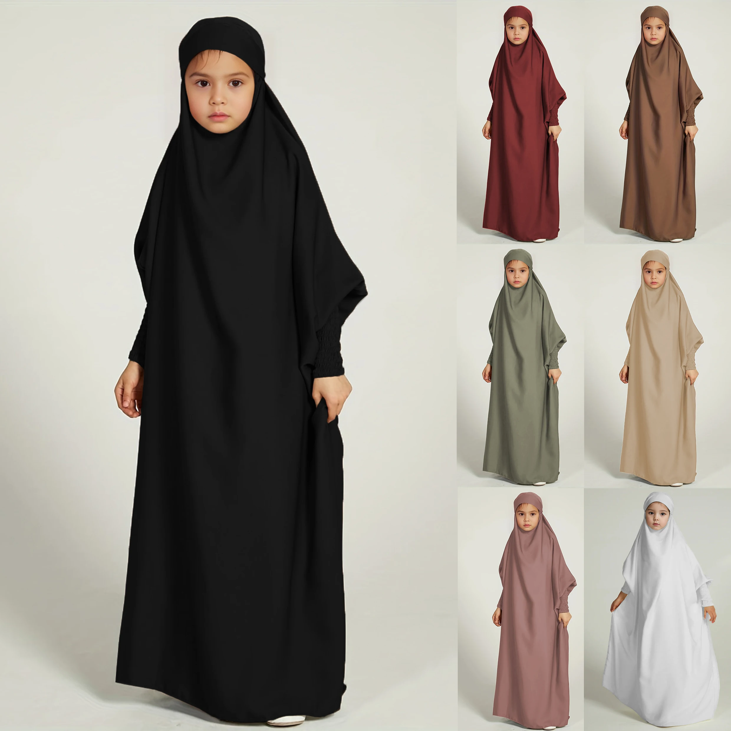 Ramadan musulman enfants filles Abaya solide longue caftan abaya enfant Robe enfants vêtements pour cadeau |