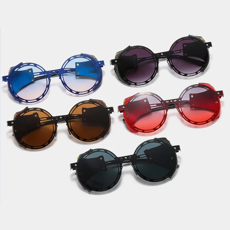 Respzed-Lunettes de soleil punk pour hommes et femmes, nuances de métal, rondes, Steampunk, cuir, vintage, designer, Oculos, UV400, Gafas |