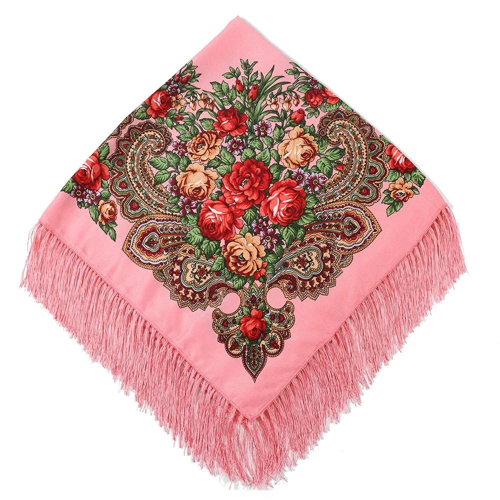 Rétro bohème écharpe florale femme luxe National vent frangé foulards carrés Hijab Babushka tête enveloppement voyage châle mouchoir |