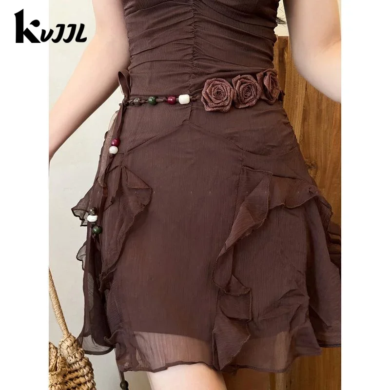 Rétro bohème Floral taille corde Rose jean décor robe taille chaîne jupe accessoires Style ethnique perle taille ceinture pour les femmes