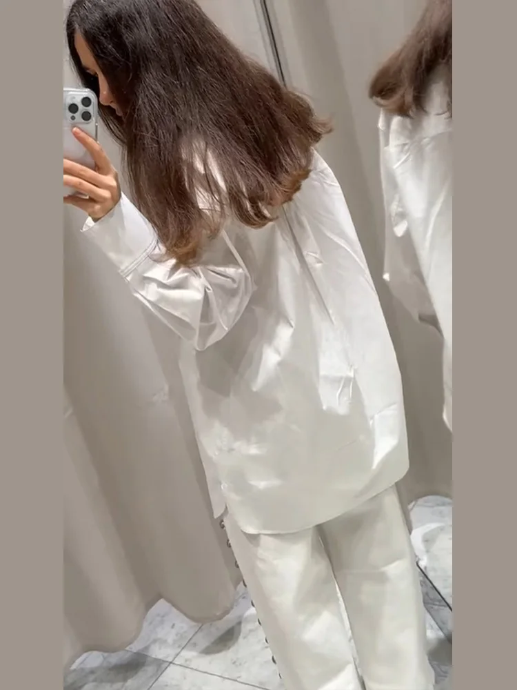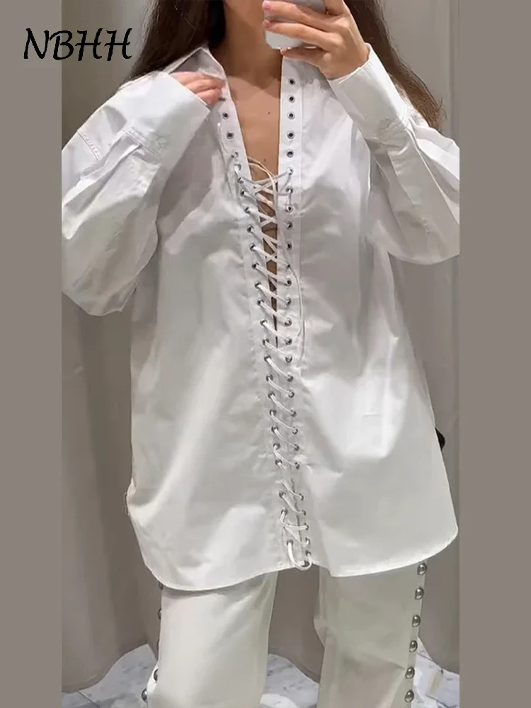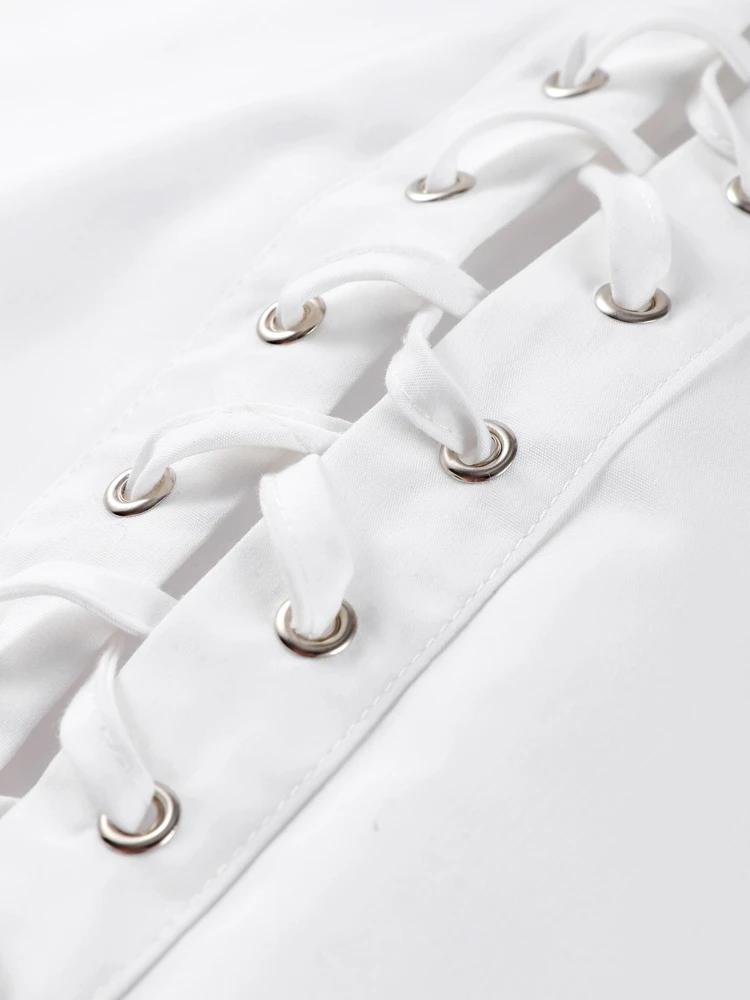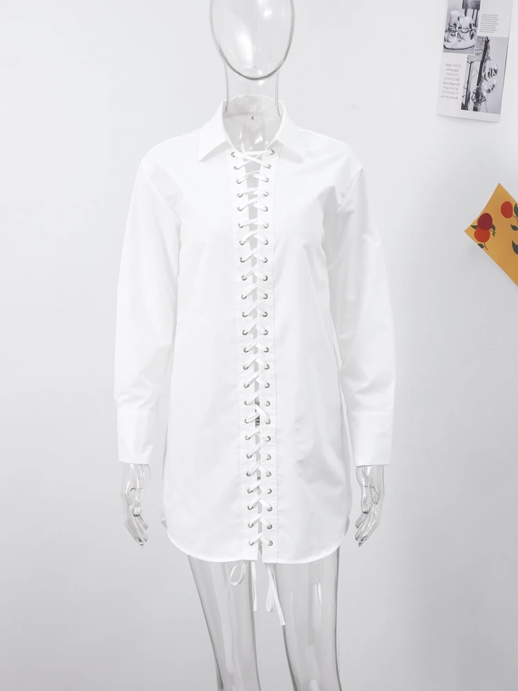 Revers ample évider chemise femme blanc à manches longues pansement à lacets chemises féminines 2025 printemps été mode dame haut rue |