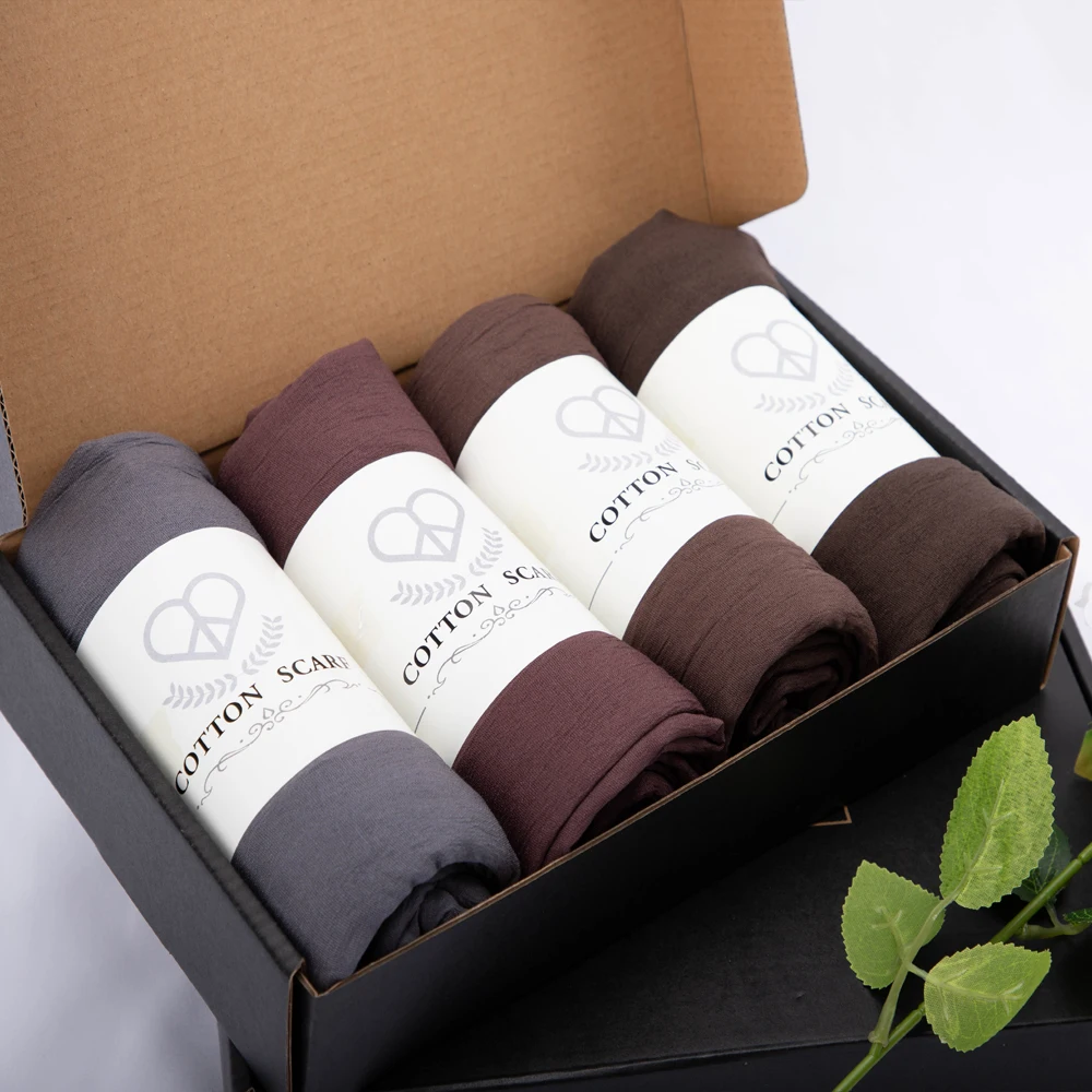 RIMAIRE-Ensemble Hijab en Coton pour Femme Musulmane, Turban Doux à la Mode, Écharpe de Sauna Fine et Respirante, Châle Enveloppant, 4 Pièces