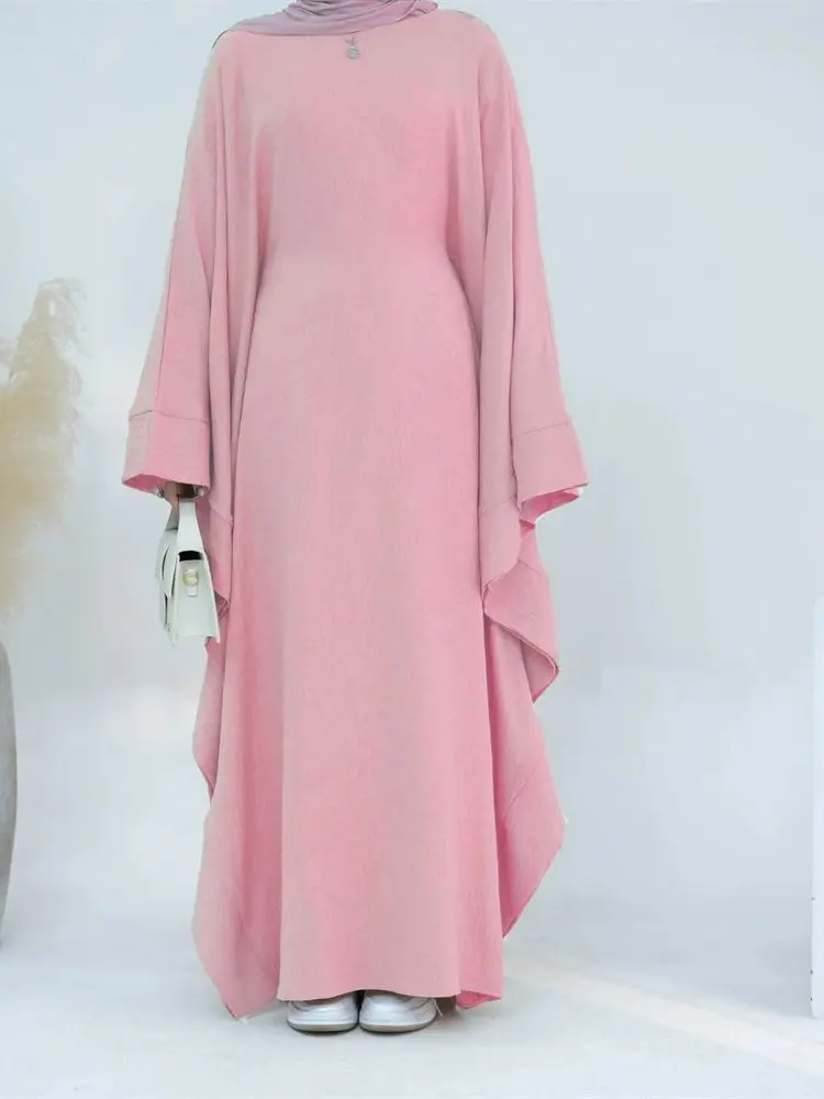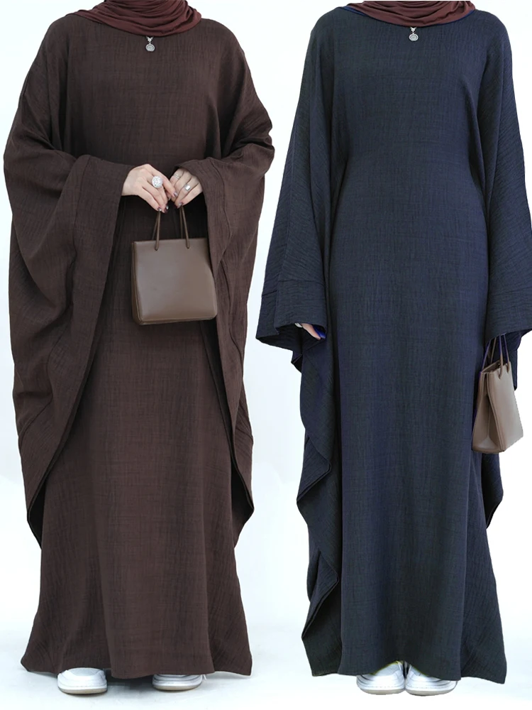 Robe caftan en lin pour femmes musulmanes, robe éducative, modeste, chauve-souris, Abaya, Ramadan, Eid, Dubaï