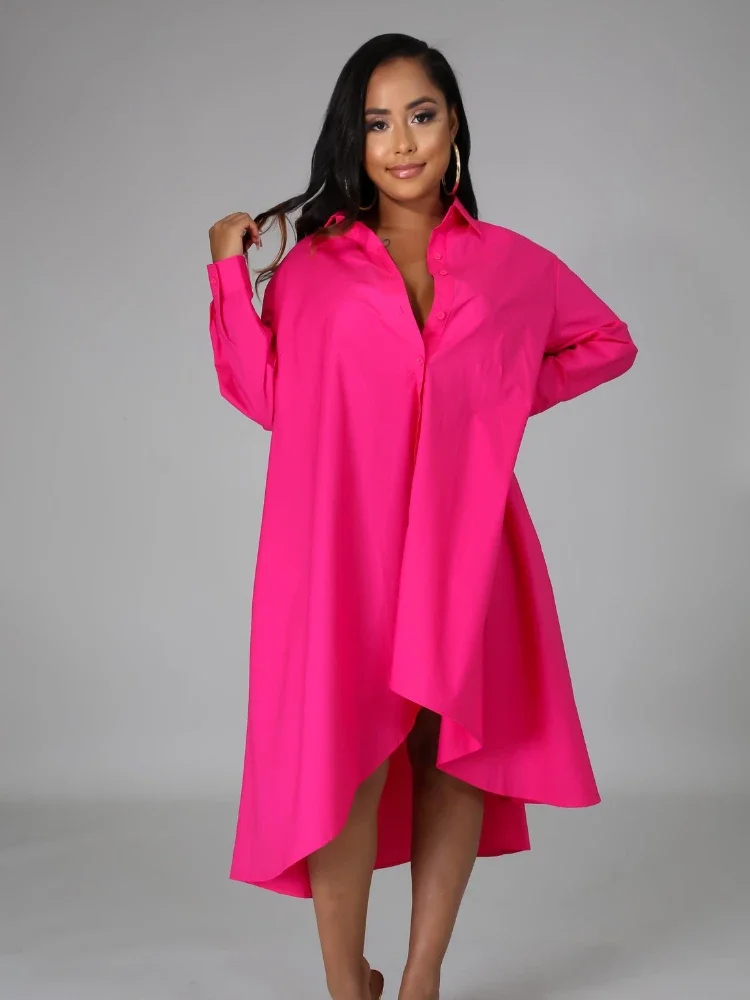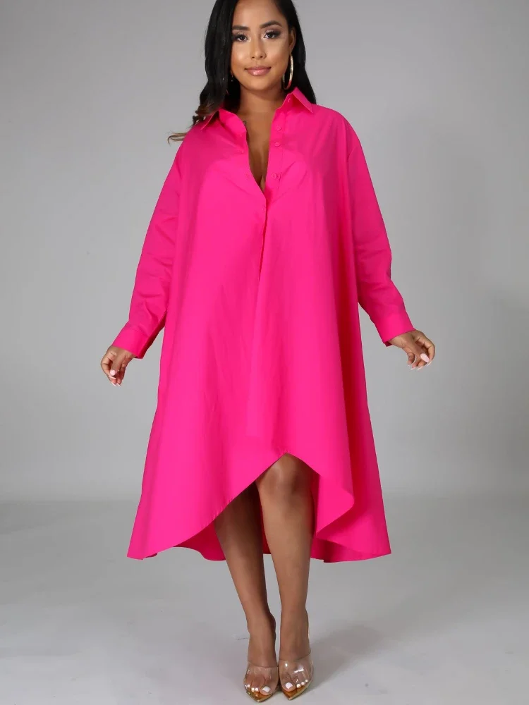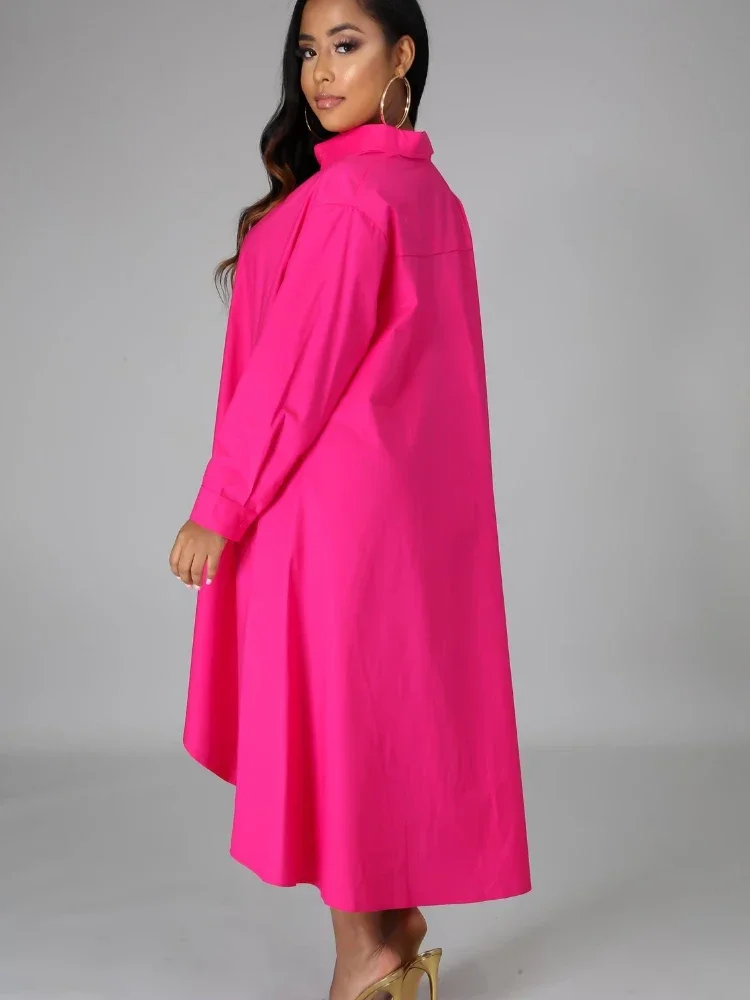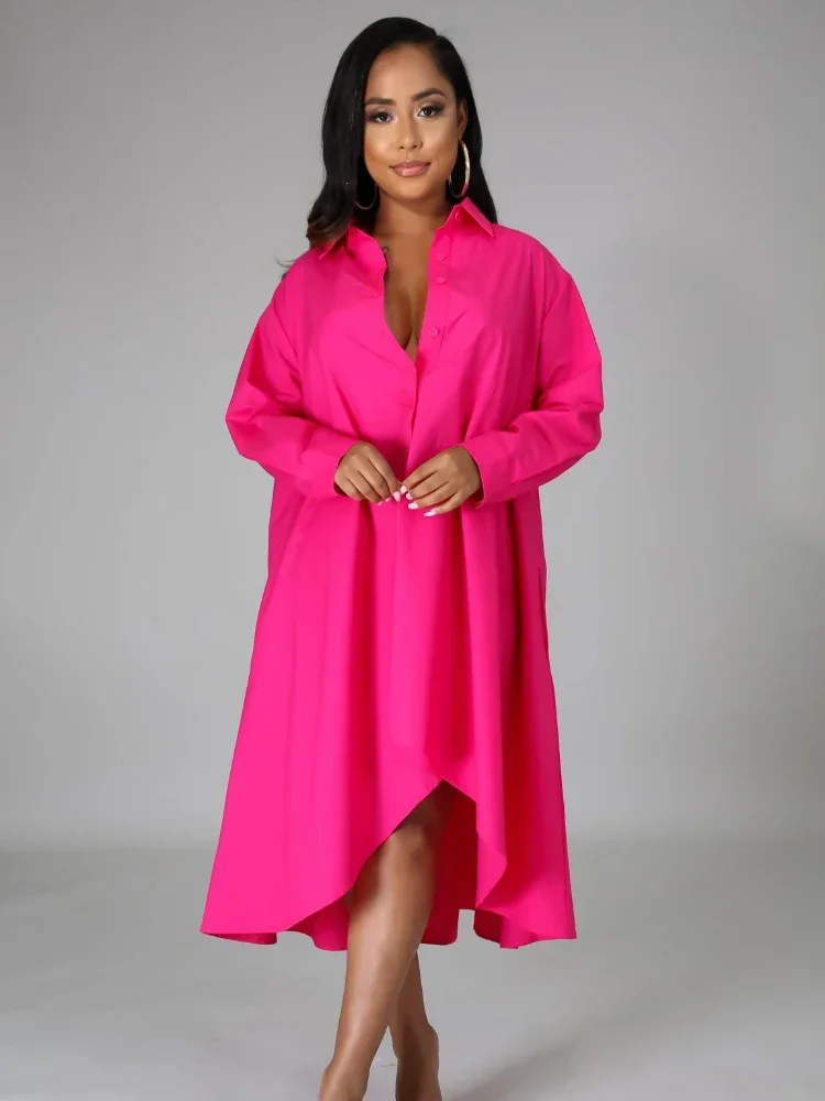 Robe chemise élégante à manches longues pour femmes, rose boutonnée, irrégulière, rêver, mode de rue, loisirs, automne, nouvel article, 2024 |