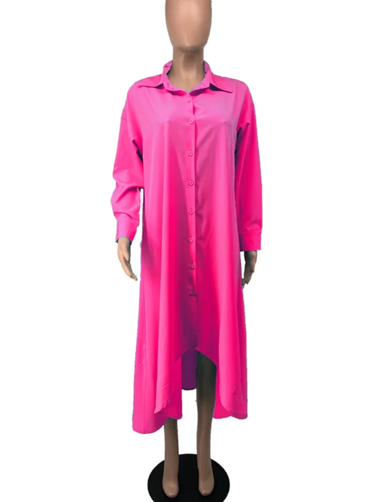 Robe chemise élégante à manches longues pour femmes, rose boutonnée, irrégulière, rêver, mode de rue, loisirs, automne, nouvel article, 2024