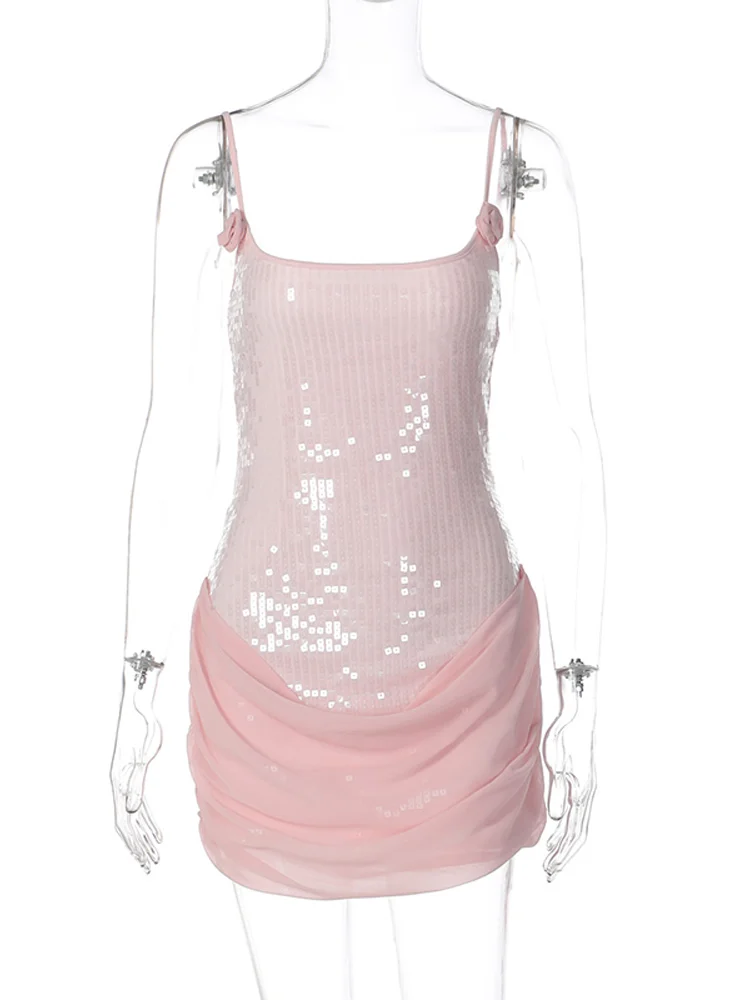 Robe courte en maille à paillettes pour femmes, Patchwork, Slim, Sexy, col carré, sans manches, dos nu, plissée, Robes de soirée, automne 2025 |