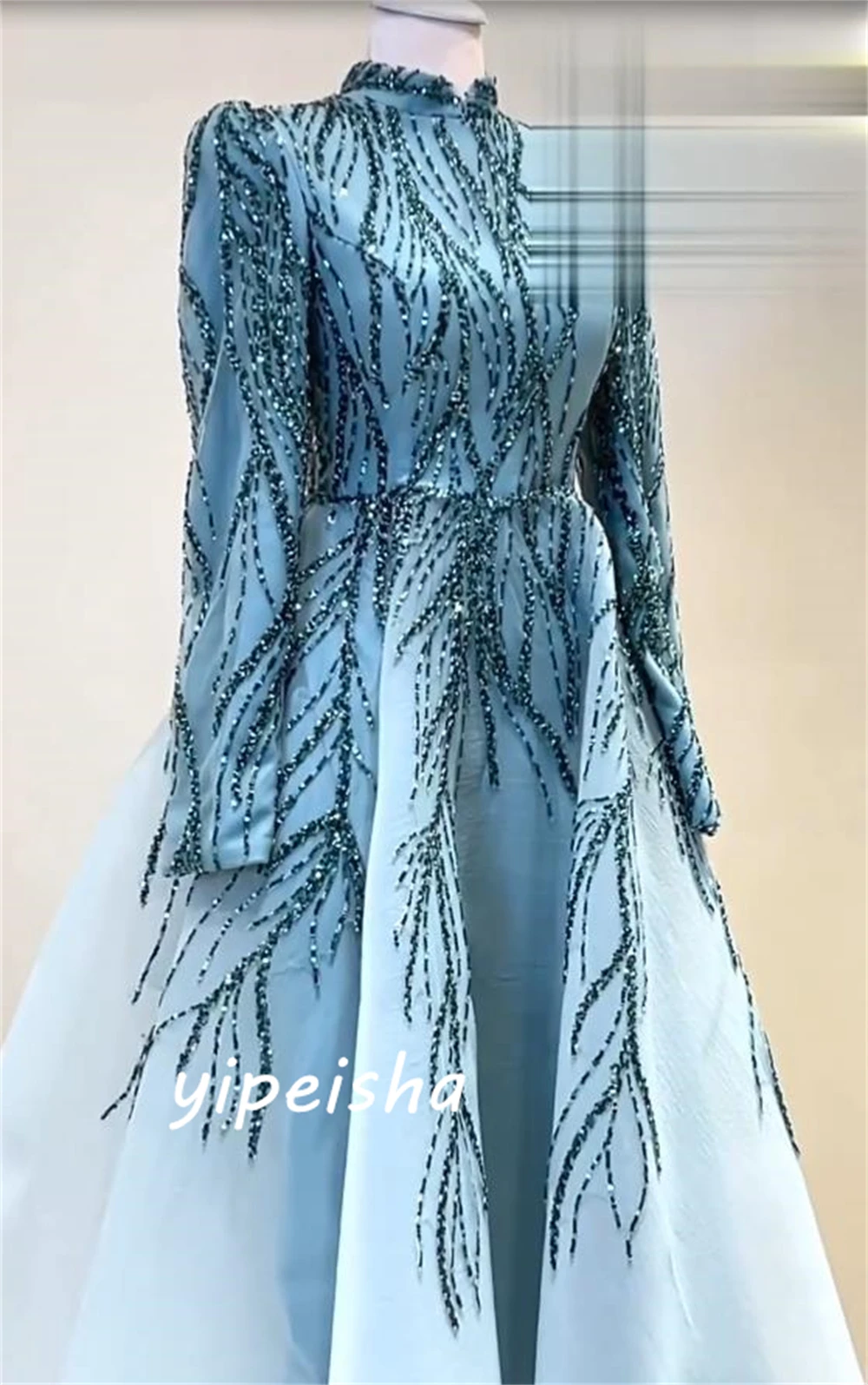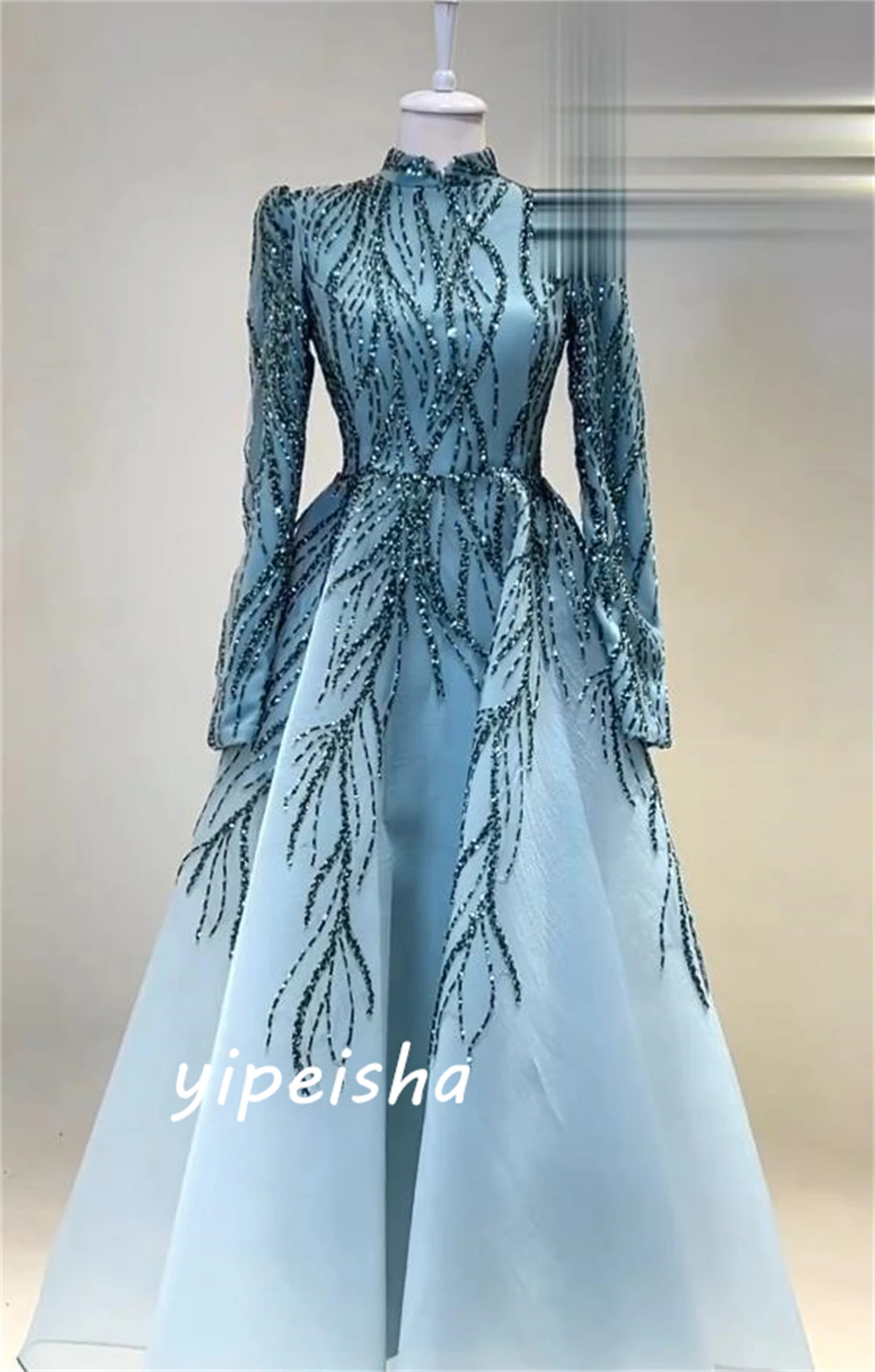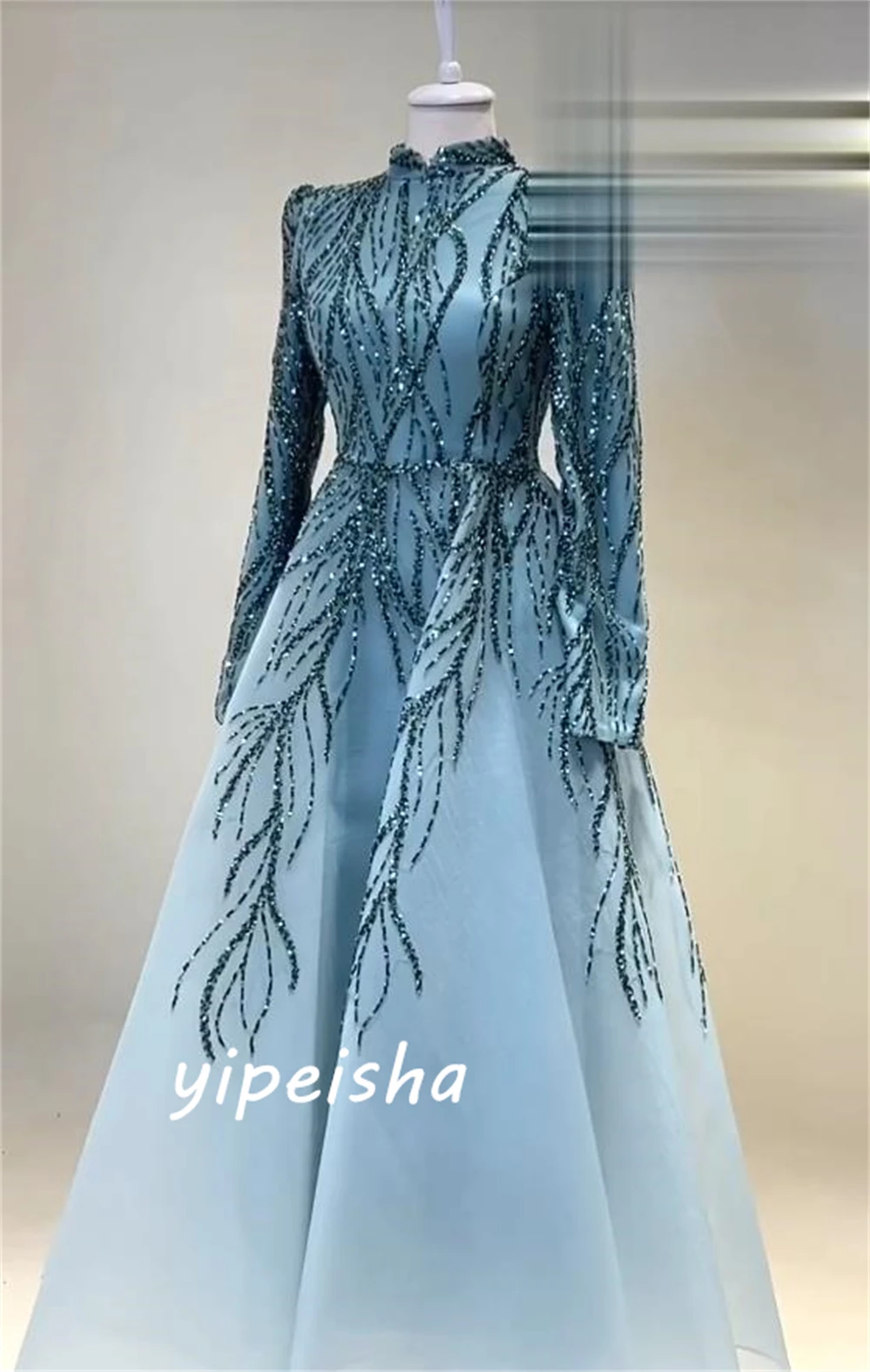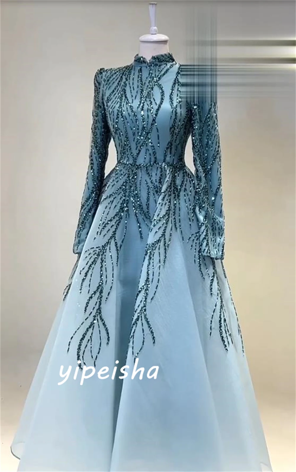 Robe de Bal à Col Haut pour Célébrité, Paillettes, Paillettes, Longueur au Sol, Organza, Personnalisé |