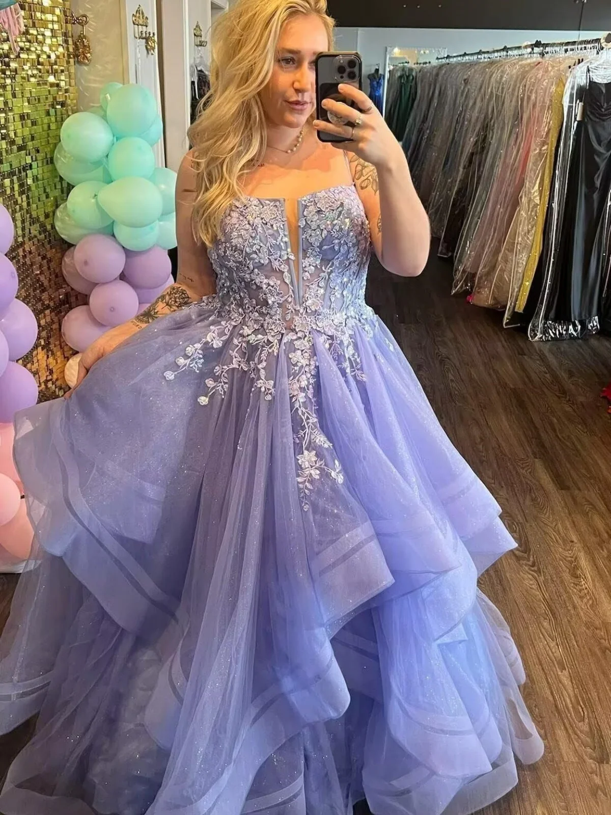 Robe de bal en Tulle à paillettes, épaules dénudées, avec des appliques en dentelle, à plusieurs niveaux, longue robe de bal à volants pour femmes |