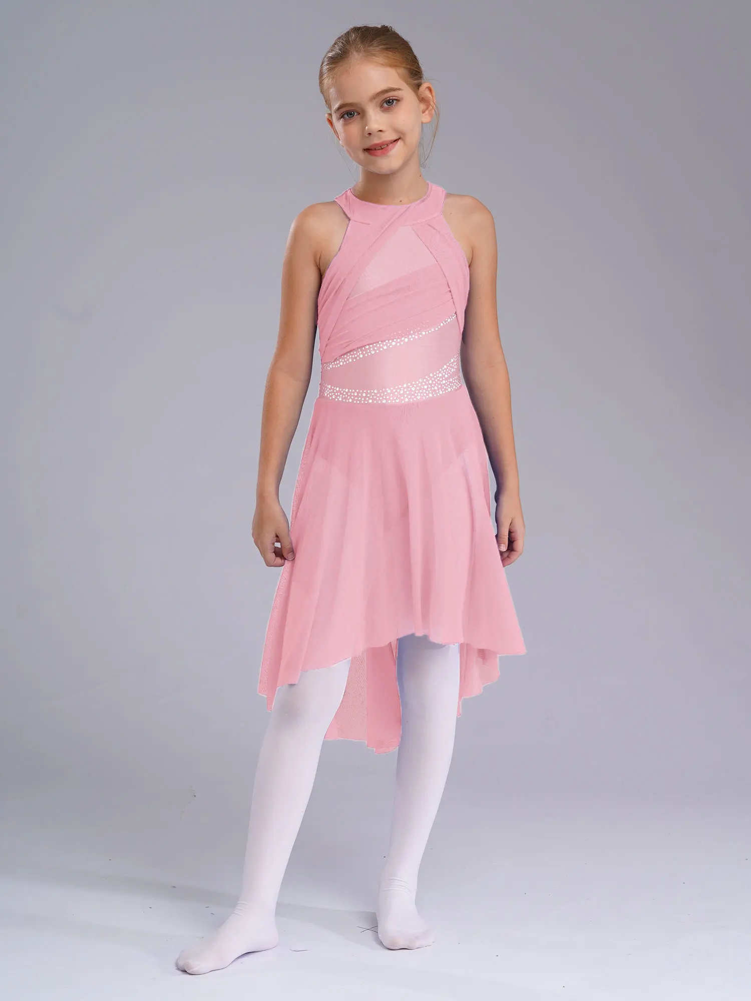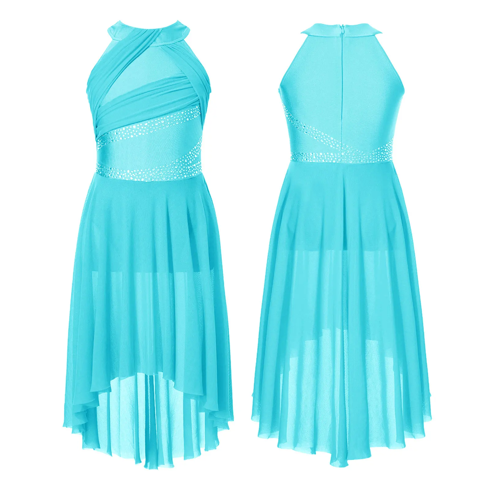 Robe de danse à strass pour filles, sans manches, vêtements de danse pour adolescentes, justaucorps de gymnastique, robes de Ballet, Costume de danse lyrique pour enfants |