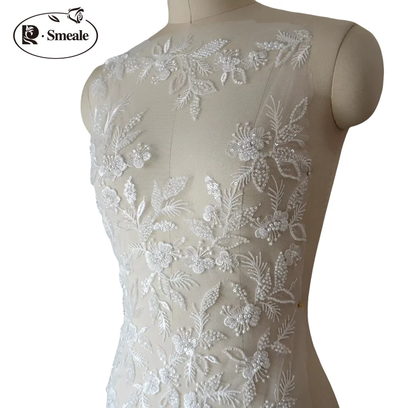 Robe de mariée 3D brodée de fleurs et de paillettes perlées, bricolage, coiffure de mariée, col en dentelle, Patch en tissu de dentelle |