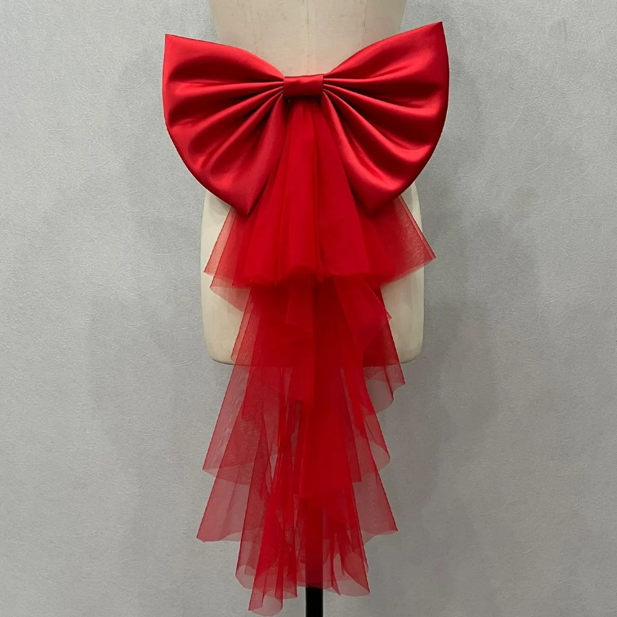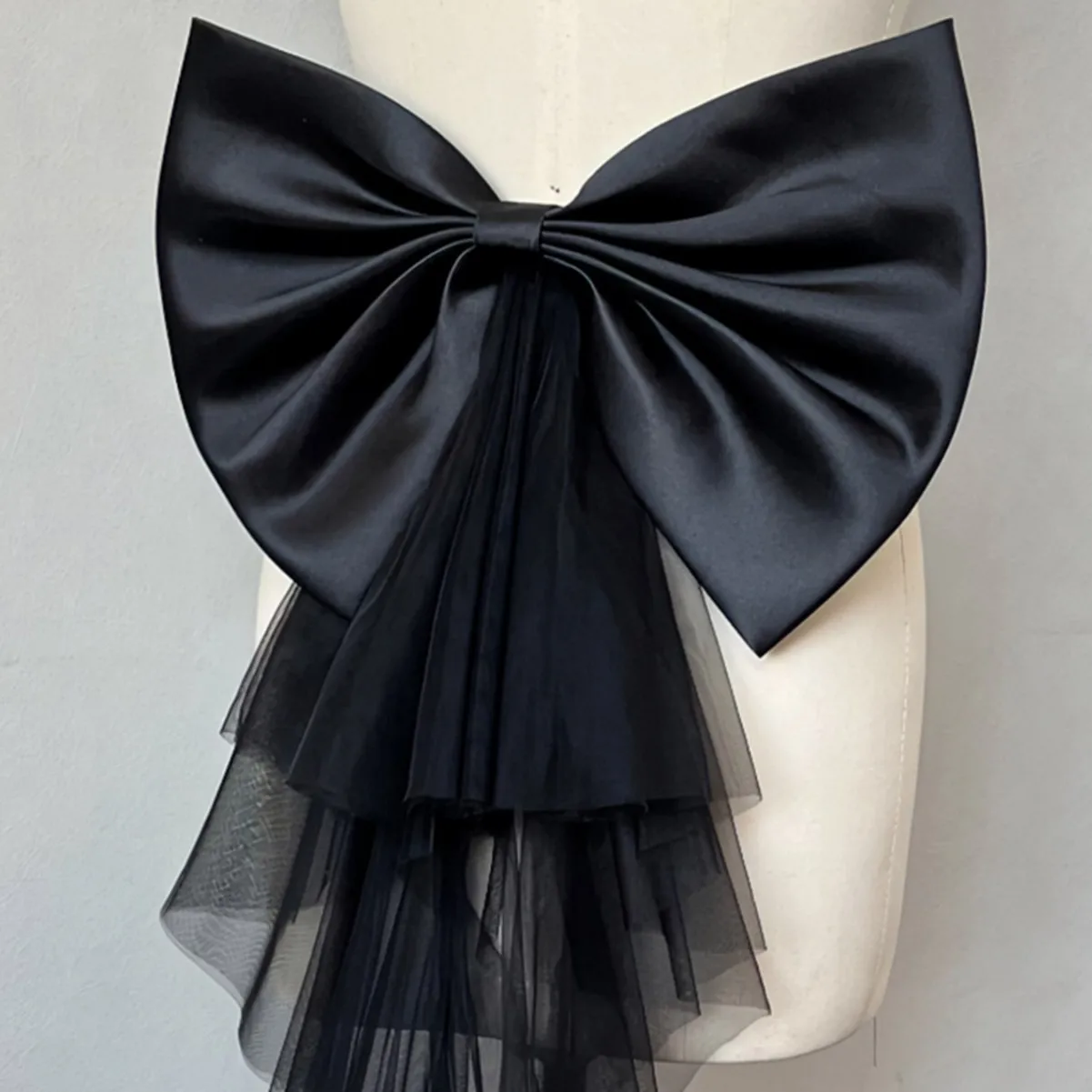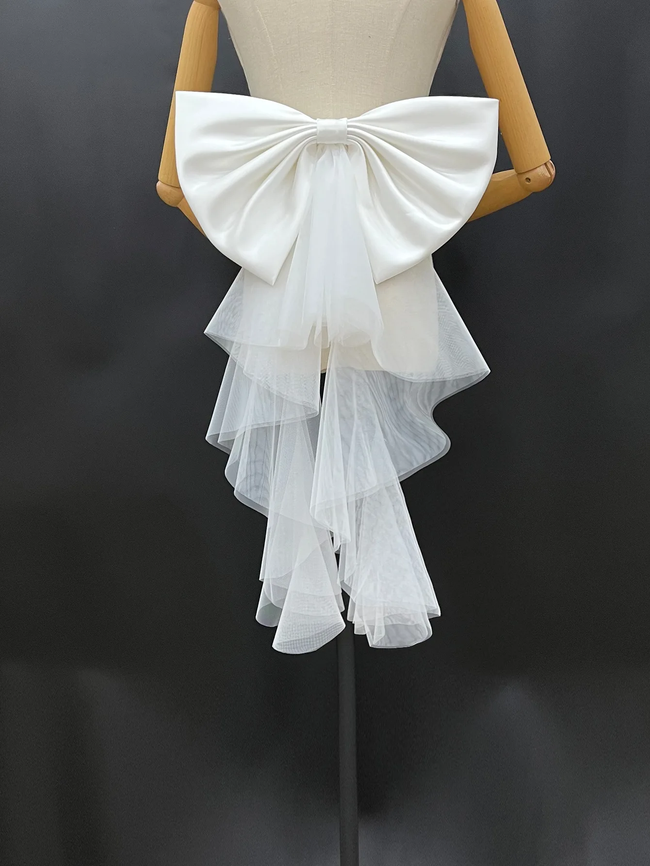 Robe de mariée élégante en Satin et Tulle détachable, décorations pour robe de mariée, ceinture de mariée, gros nœud en Satin, accessoires