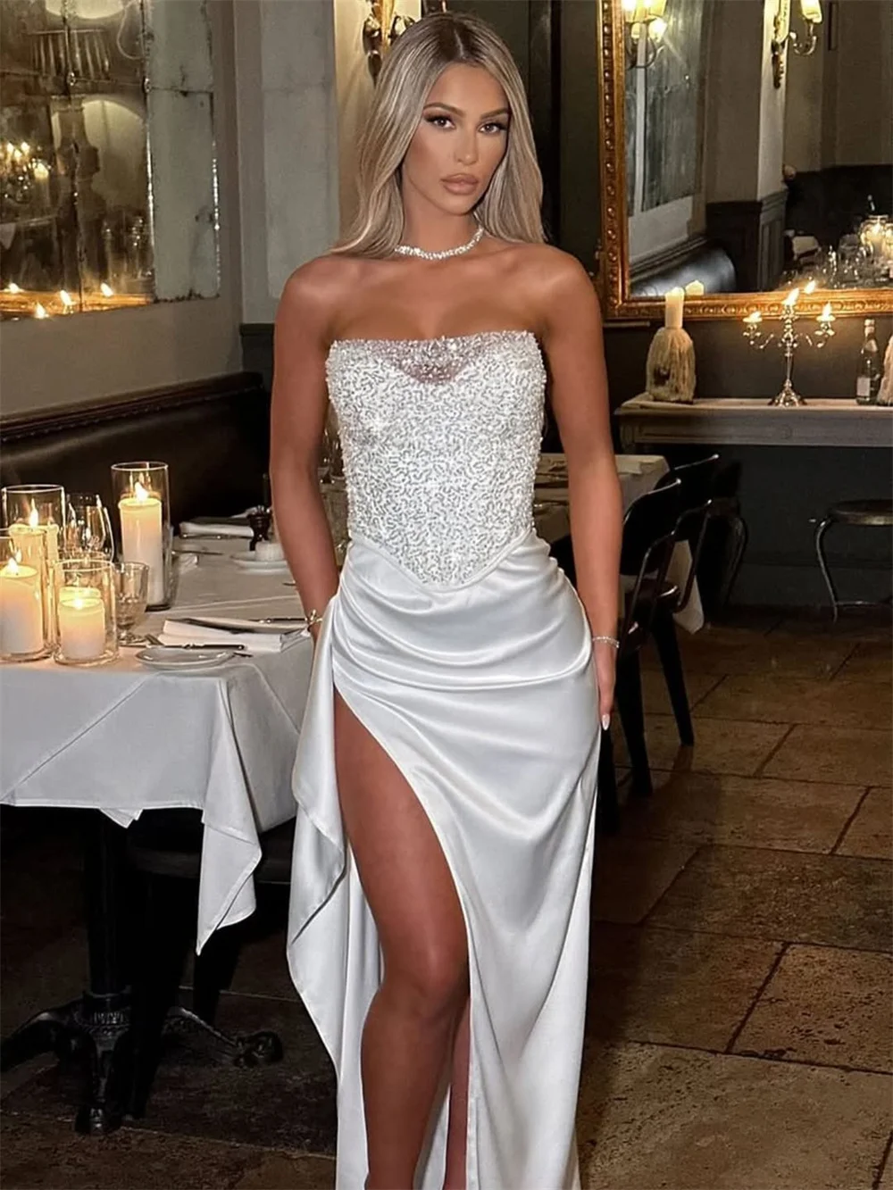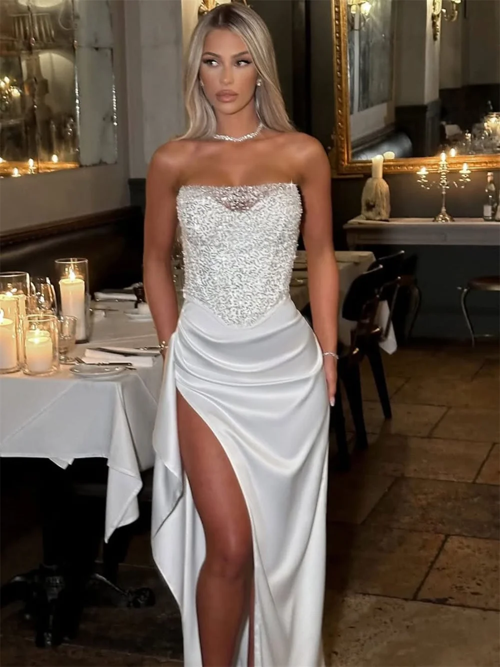 Robe De mariée fourreau en Satin à paillettes brillantes, fente latérale, sur mesure, 2026 |