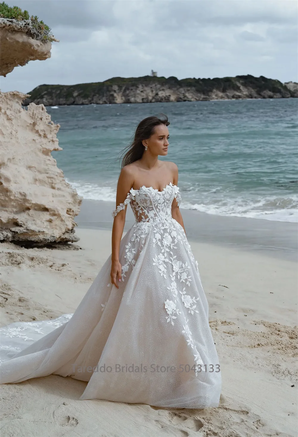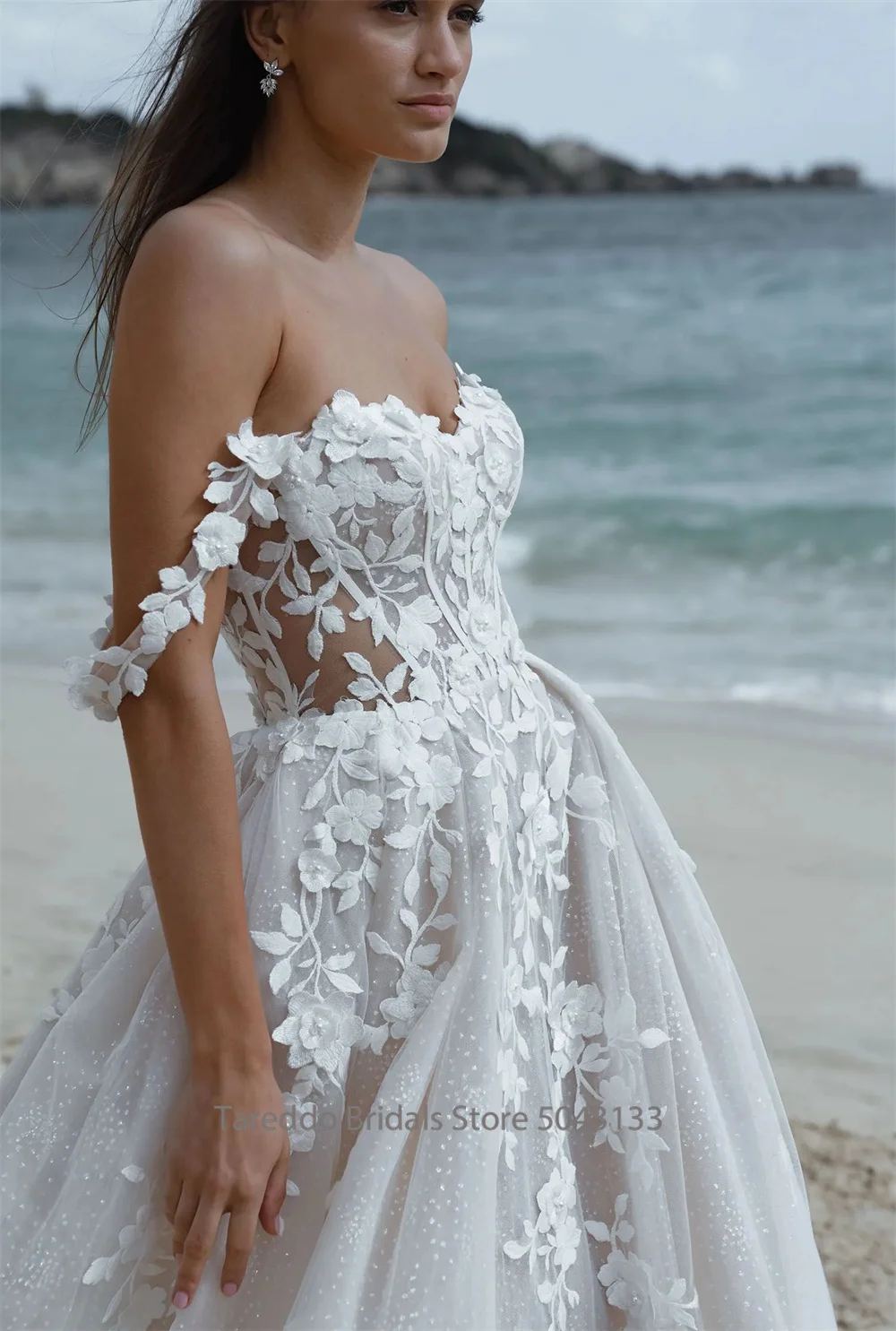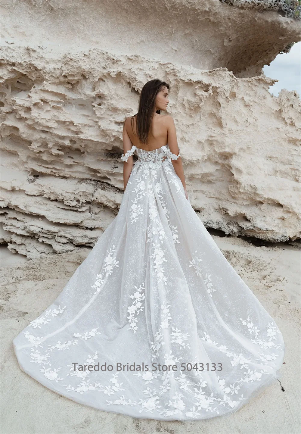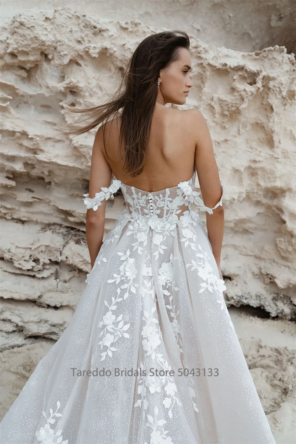 Robe de mariée trapèze nue personnalisée, avec des appliques délicates en dentelle et des couches de Tulle, robe de mariée de plage pour mariée romantique |