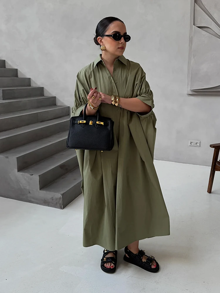 Robe de plage ample pour femmes, élégante, manches courtes, poches surdimensionnées, ligne a, mode d’été 2025, 2025