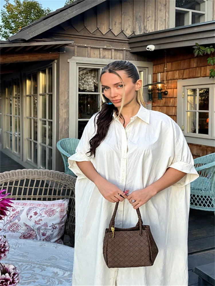 Robe de plage ample pour femmes, élégante, manches courtes, poches surdimensionnées, ligne a, mode d'été 2025, 2025 |