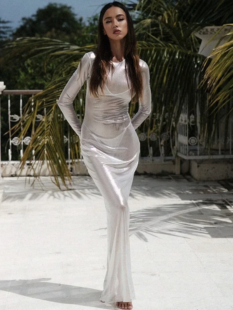 Robe de plage en maille transparente pour femmes, couvertures de plage, manches longues, coupe couvertes, tenues éducatives, Hot Club Rave, 1 pièce |