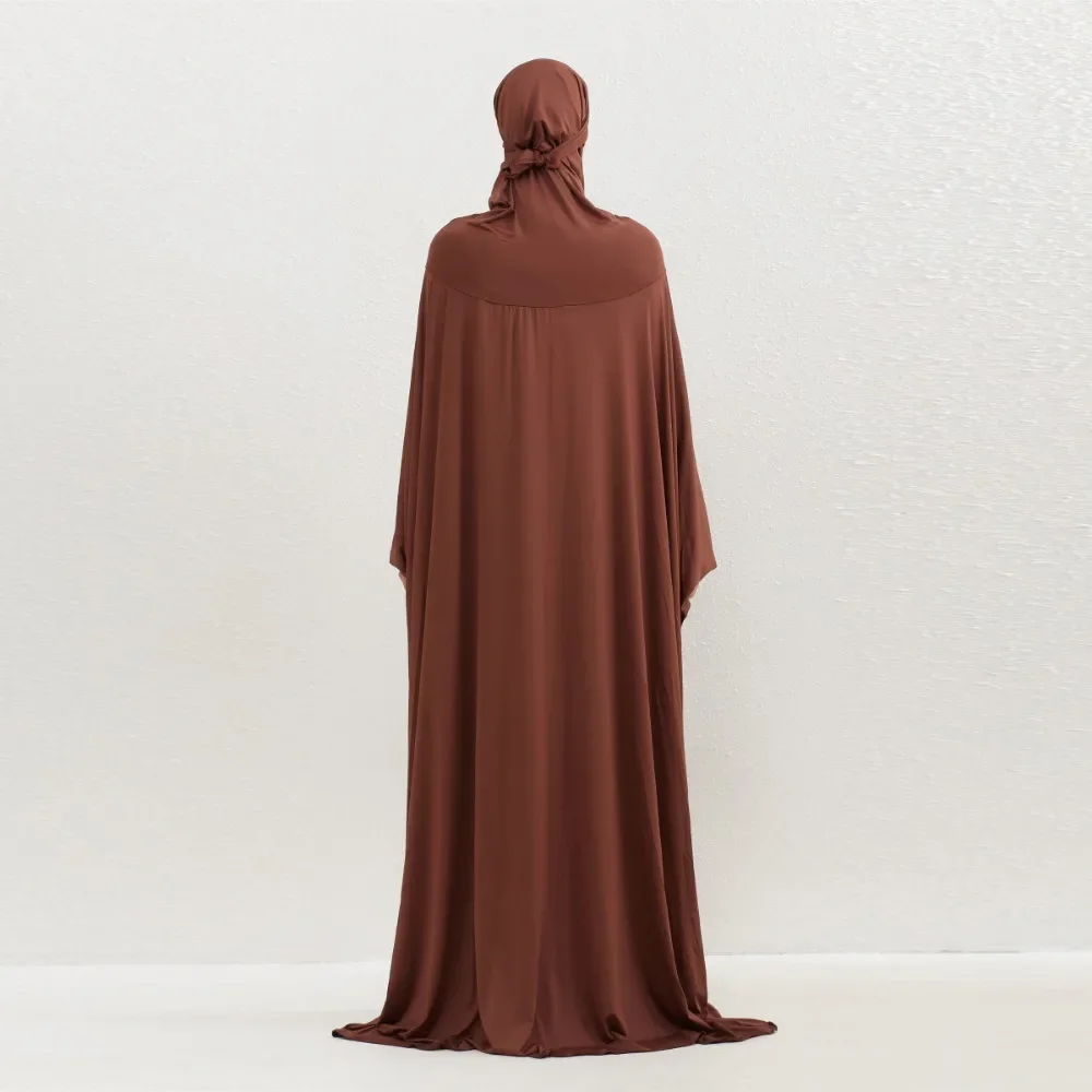 "Cette robe de prière est tout simplement magnifique ! La coupe est très flatteuse et le tissu est de très bonne qualité, doux et confortable. J'apprécie particulièrement la discrétion et la modestie que dégage cette pièce. Le seul petit bémol est que la taille était un peu juste à la réception, mais un simple ajustement l'a rendue parfaite. Dans l'ensemble, je suis très satisfaite de mon achat et je recommande vivement ce produit."