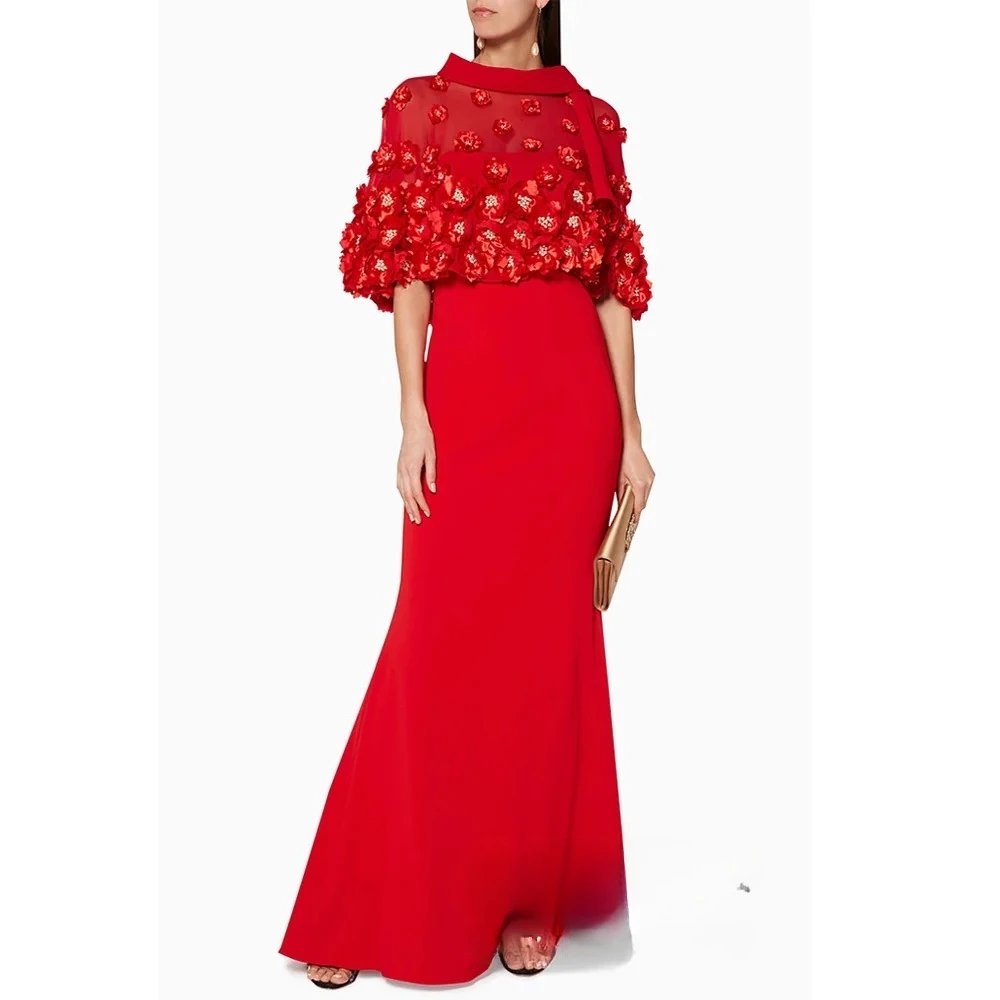 Robe de soirée arabe avec fleurs, Cape personnalisée, sans bretelles, sans manches, perles, robe de bal de forme sirène, robes de fête de mariage exquises |
