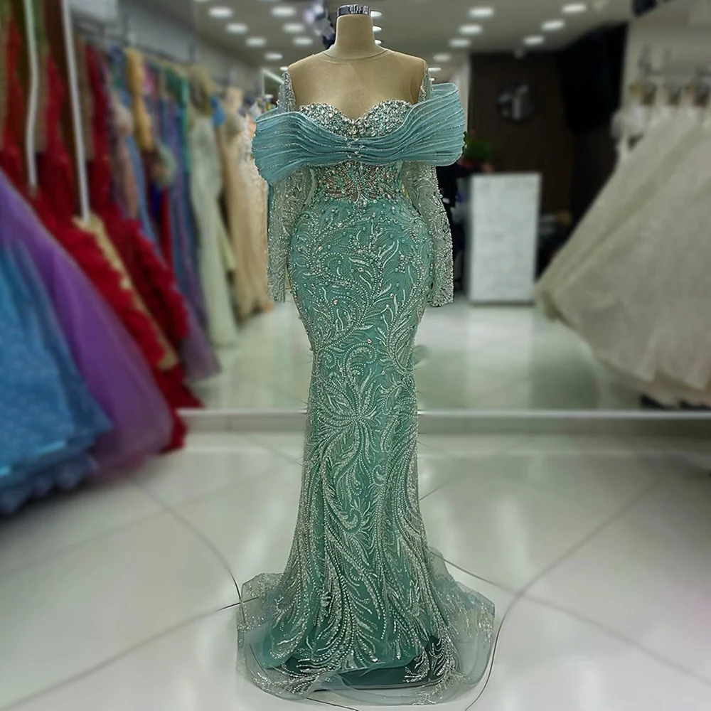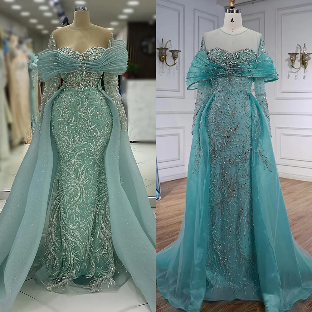 Abaya musulman de luxe de Style dubaï, vert clair avec des embellissements de paillettes dorées et brillantes, idéal pour les Galas de la haute société arabe, nouvelle collection 2025