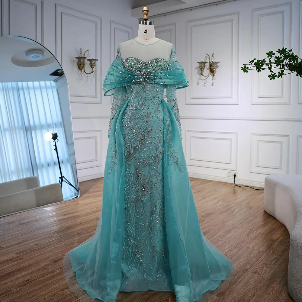 Robe de soirée arabe bleue perlée, manches longues, avec nœud sur le devant, Style saoudien, Serene Hill, personnalisée, LA72841, 2025 |