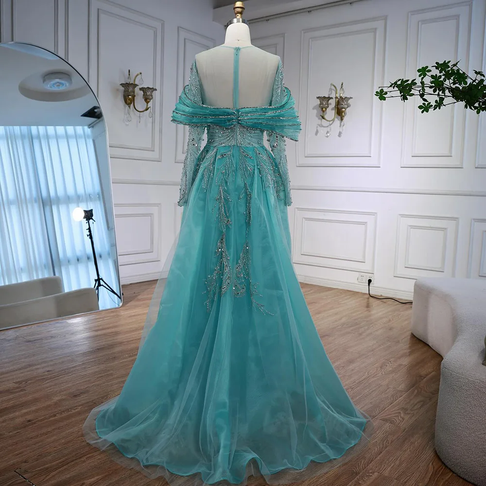 Robe de soirée arabe bleue perlée, manches longues, avec nœud sur le devant, Style saoudien, Serene Hill, personnalisée, LA72841, 2025