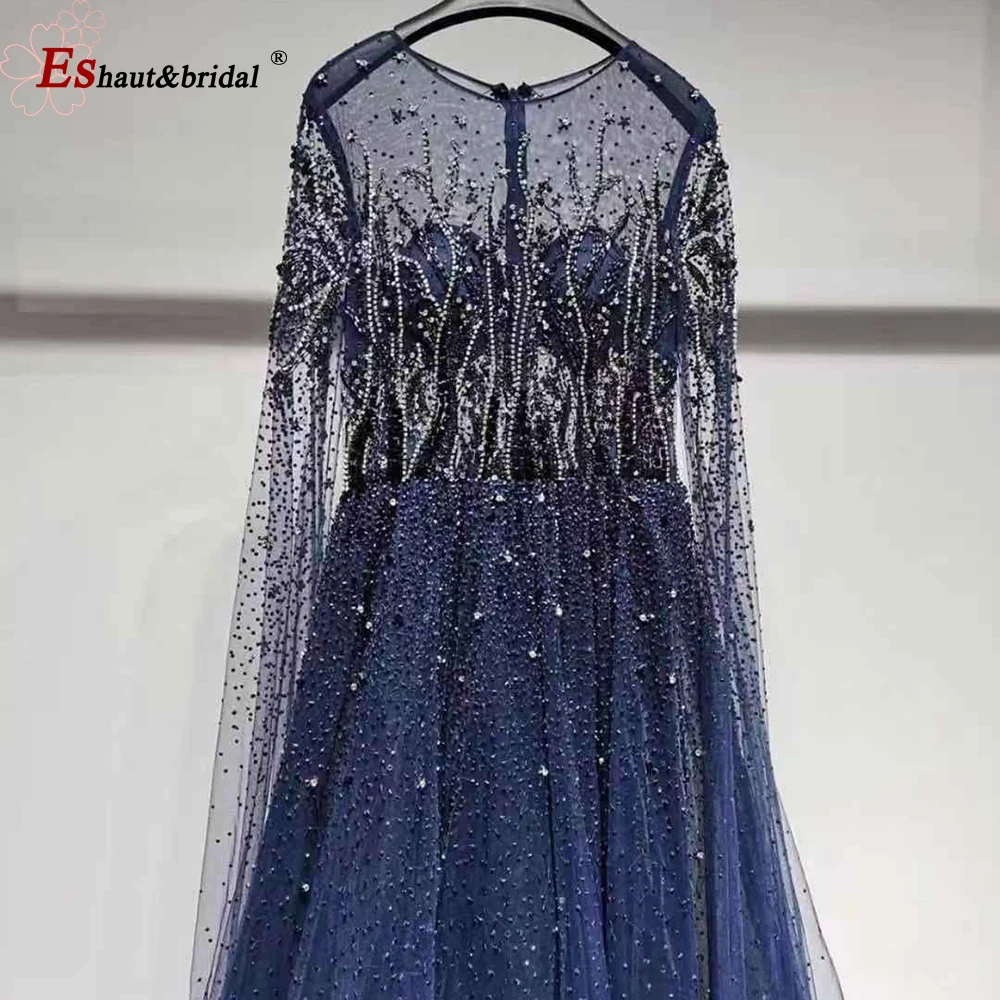 Robe de soirée arabe élégante de dubaï pour femmes, manches longues, col rond, ligne a, luxe, robes de bal formelles de mariage, personnalisées, 2025 |