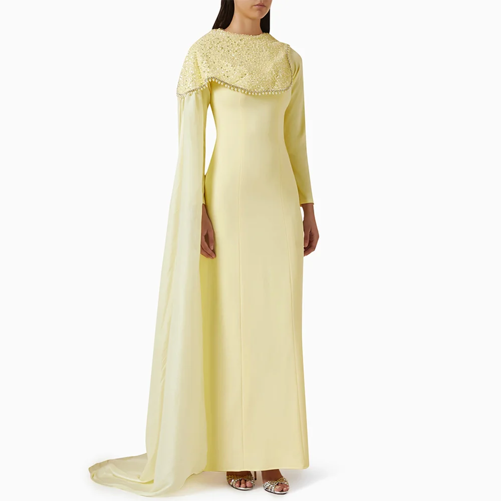 "J'ai été vraiment impressionnée par cette robe de soirée arabe. Le tissu est de très haute qualité, avec de magnifiques broderies de perles et de paillettes qui lui donnent une allure vraiment élégante. La coupe est très flatteuse et la fente dans le dos ajoute une belle touche de sophistication. La seule petite ombre au tableau est que la robe nécessite un repassage attentif après la réception, mais cela en vaut totalement la peine. Dans l'ensemble, c'est une très belle pièce qui me fait me sentir sublime à chaque fois que je la porte."